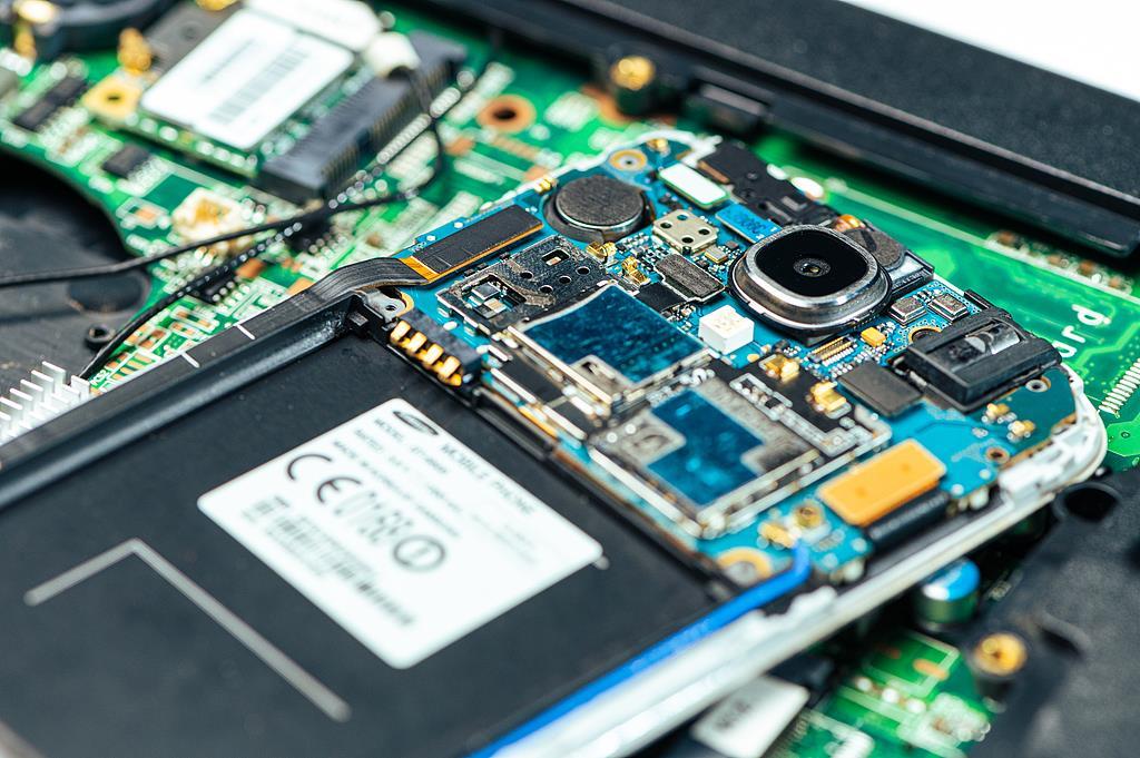拆解后的芯片、电子元器件等