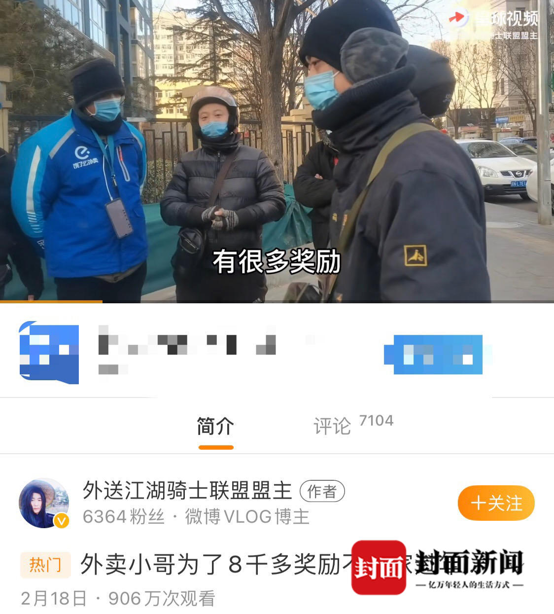 当记者问及是否后悔春节参加活动而没有返乡,他说,“真的很后悔,早知道是这样,我还不如回家陪家人过年,8200元吸引了多少外卖小哥留京过年。”