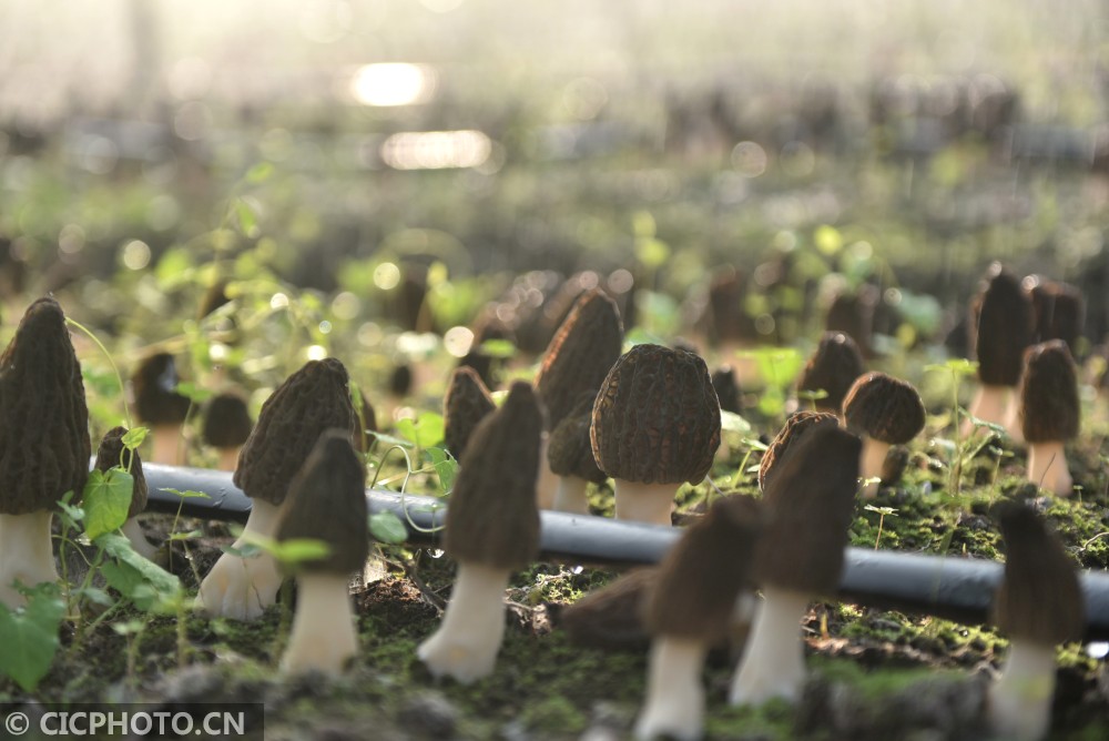 ↑2021年2月21日在四川省内江市农业科学院羊肚菌种植试验示范大棚里拍摄的羊肚菌。CICPHOTO/黄正华 摄