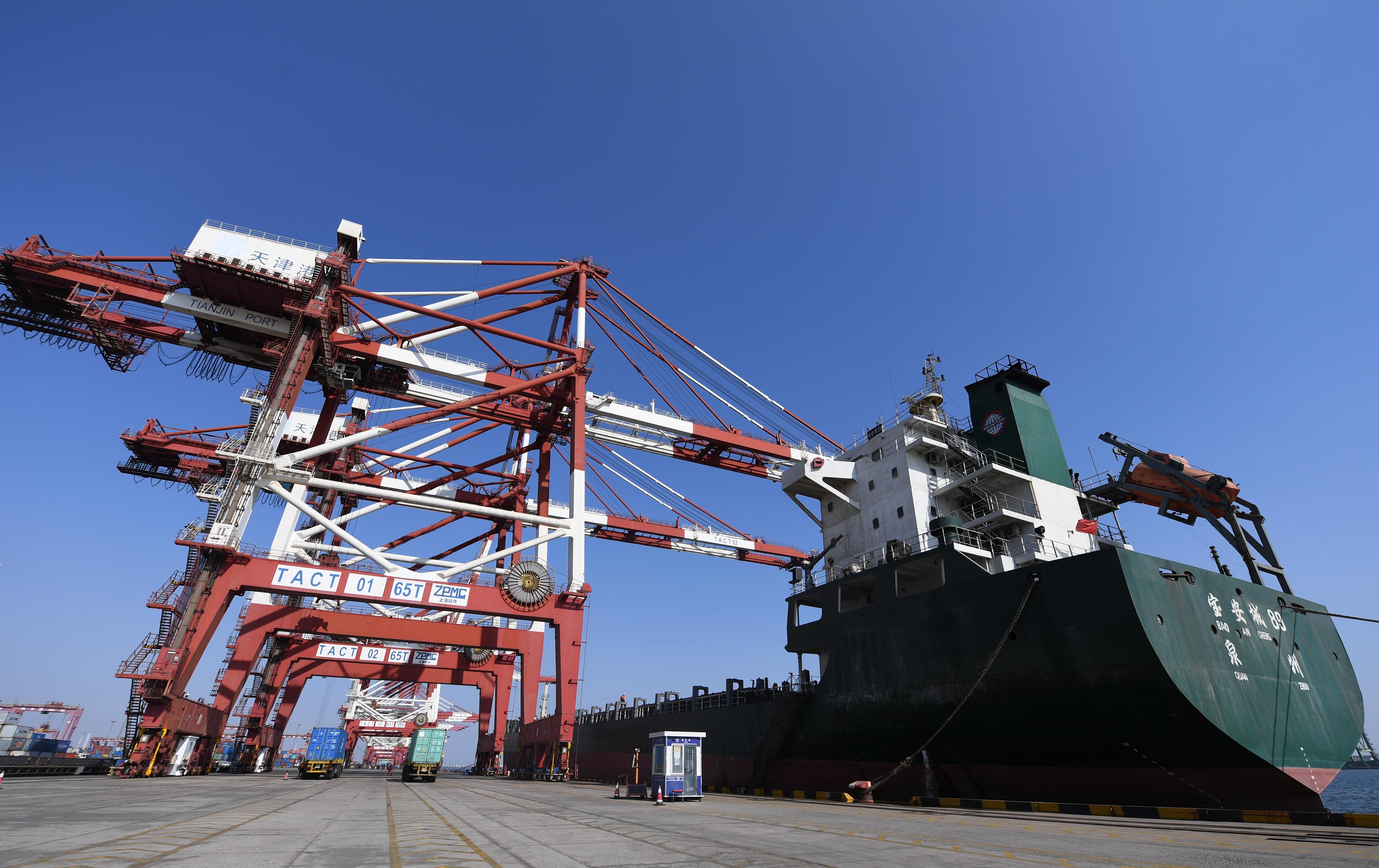 “以前港口小船多,现在借助天津港的管理经验和航线资源,大型货轮也常来常往了。”望着越来越多停泊的货轮,河北省沧州港务集团总经理助理王金岗说,去年疫情以来,天津港和沧州黄骅港之间开通“天天班海上快线”,把两个港口更紧密地串起来。