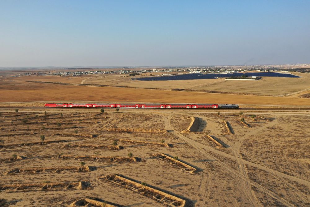 2020年11月29日,在以色列南部城市贝尔谢巴附近,一列火车在内盖夫沙漠中穿行。新华社发