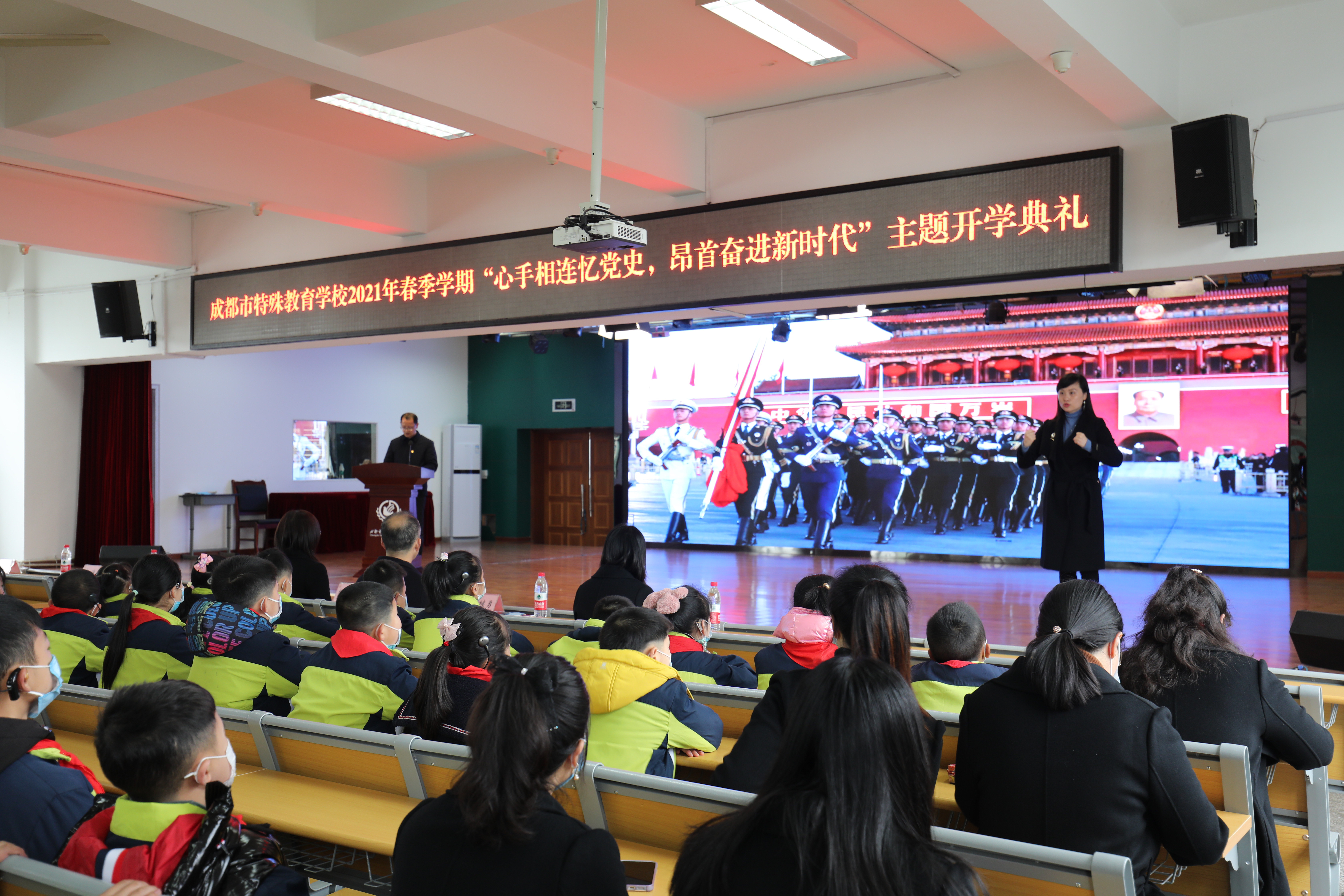 活动中,成都特殊教育学校校长杨剑梅致辞,鼓励残疾学生继承和发扬党的光荣传统,坚定对理想信念的追求,以优异的成绩奋进新时代。省残联教育就业处处长肖奎围绕党领导下的残疾人教育事业发展和残疾学生状况改善讲述国歌小故事。特教学校2名学生朗诵了诗歌《有一页历史》,表达了对党和祖国的拳拳热爱,抒发了对未来的理想和抱负,党员教师代表韩小晓发言,表示特教人将继续传承红色基因,不忘初心,牢记使命,以奉献之心忠诚于党的特殊教育事业。