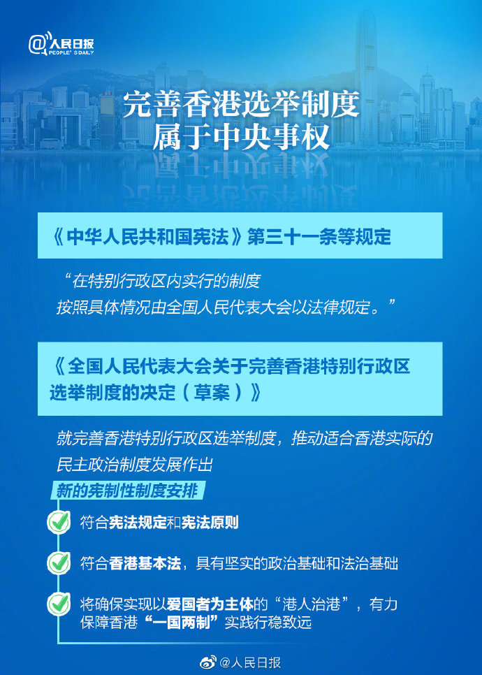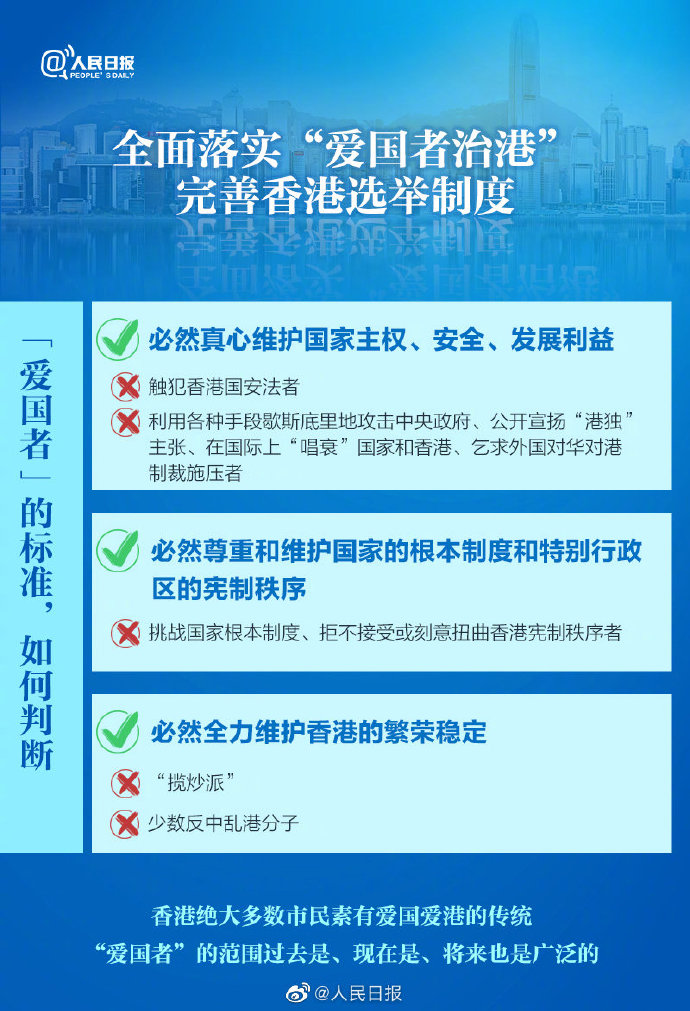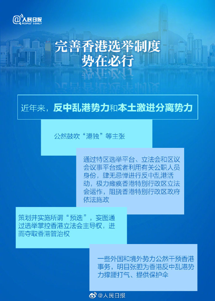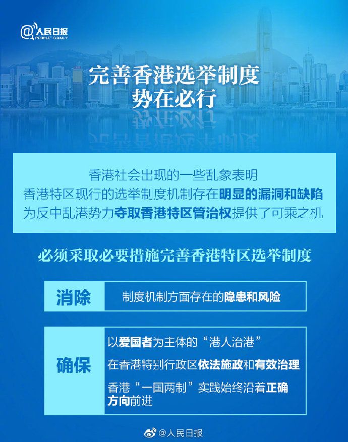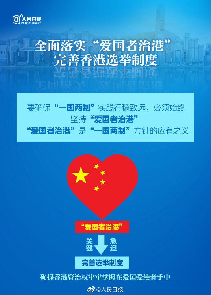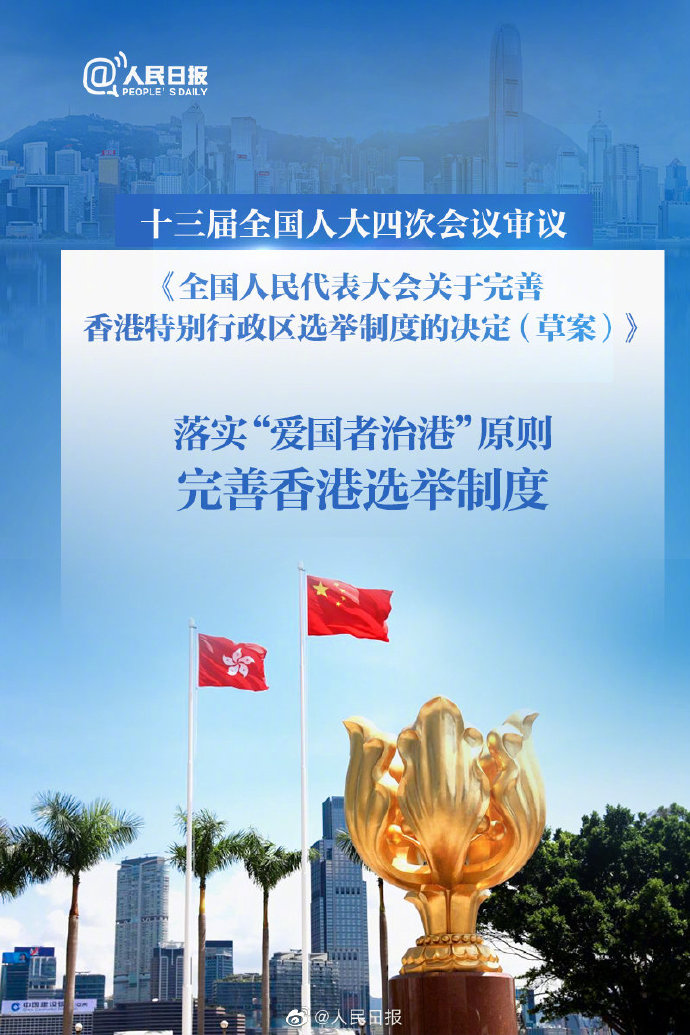 十三届全国人大四次会议审议有关决定,完善香港特区选举制度。近年来香港社会出现乱象的一个重要根源,是“爱国者治港”原则还没有得到完全落实。堵塞漏洞,筑牢屏障,确保“一国两制”实践行稳致远,九图了解为什么要完善香港选举制度↓