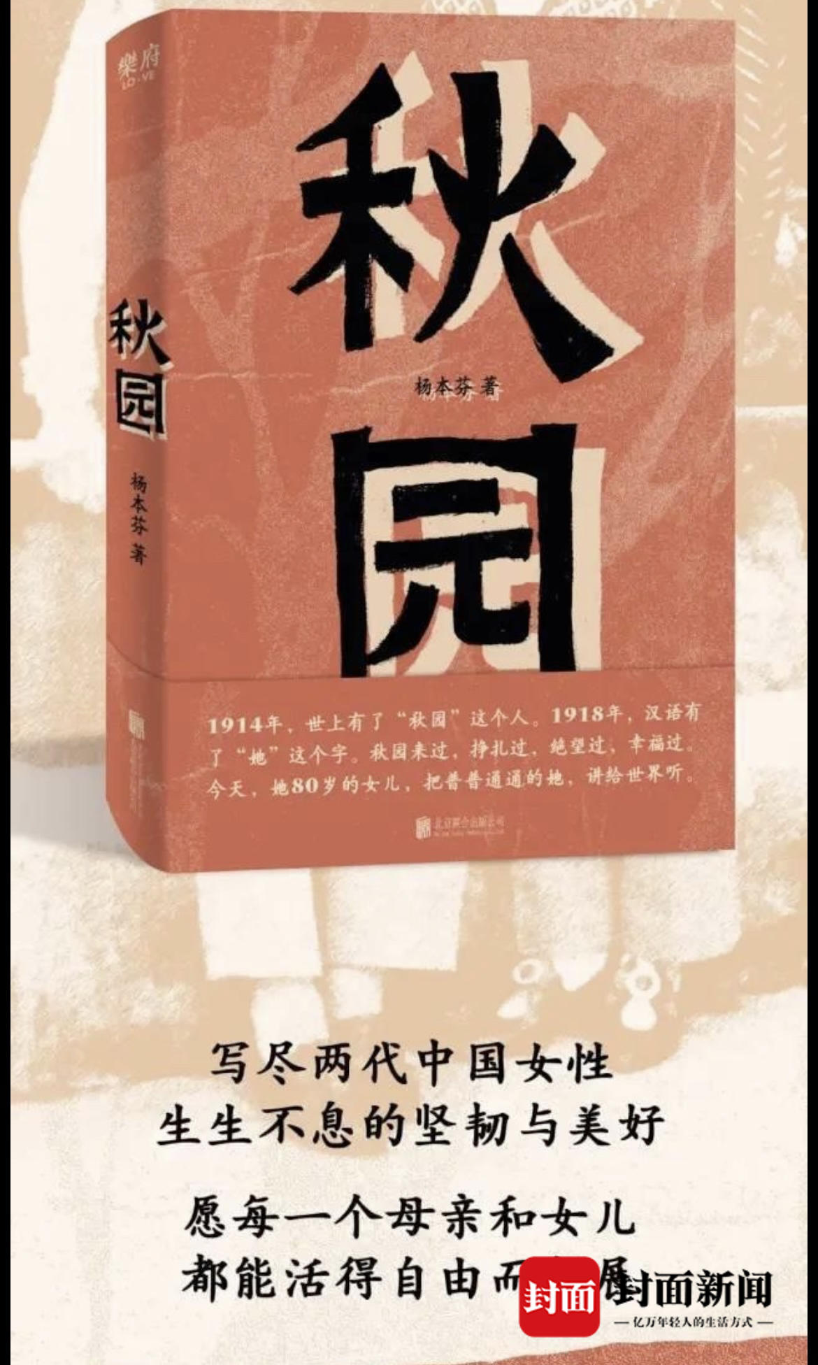 “秋园”有一个女儿叫杨本芬,虽不是作家但热爱阅读和写作。2020年6月,80岁的杨本芬,出版了自己平生第一本书《秋园》,讲述妈妈“秋园”充满苦难但也不失坚韧美好的一生。