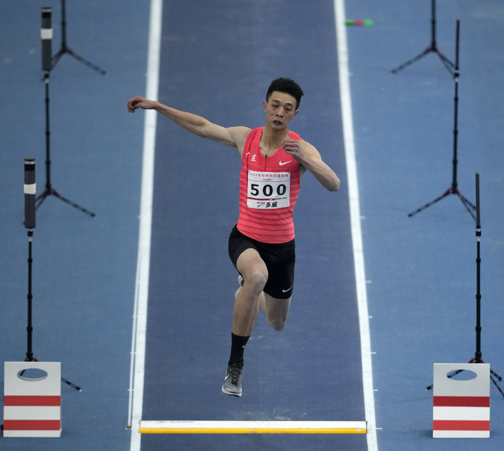 当日,在四川省成都市举行的2021室内田径邀请赛(西南赛区)男子三级跳远比赛中,辽宁队选手朱亚明以17米32的成绩夺得冠军,广东队选手吴瑞庭和陕西队选手方耀庆分别以17米20和17米15的成绩获得亚军和季军。