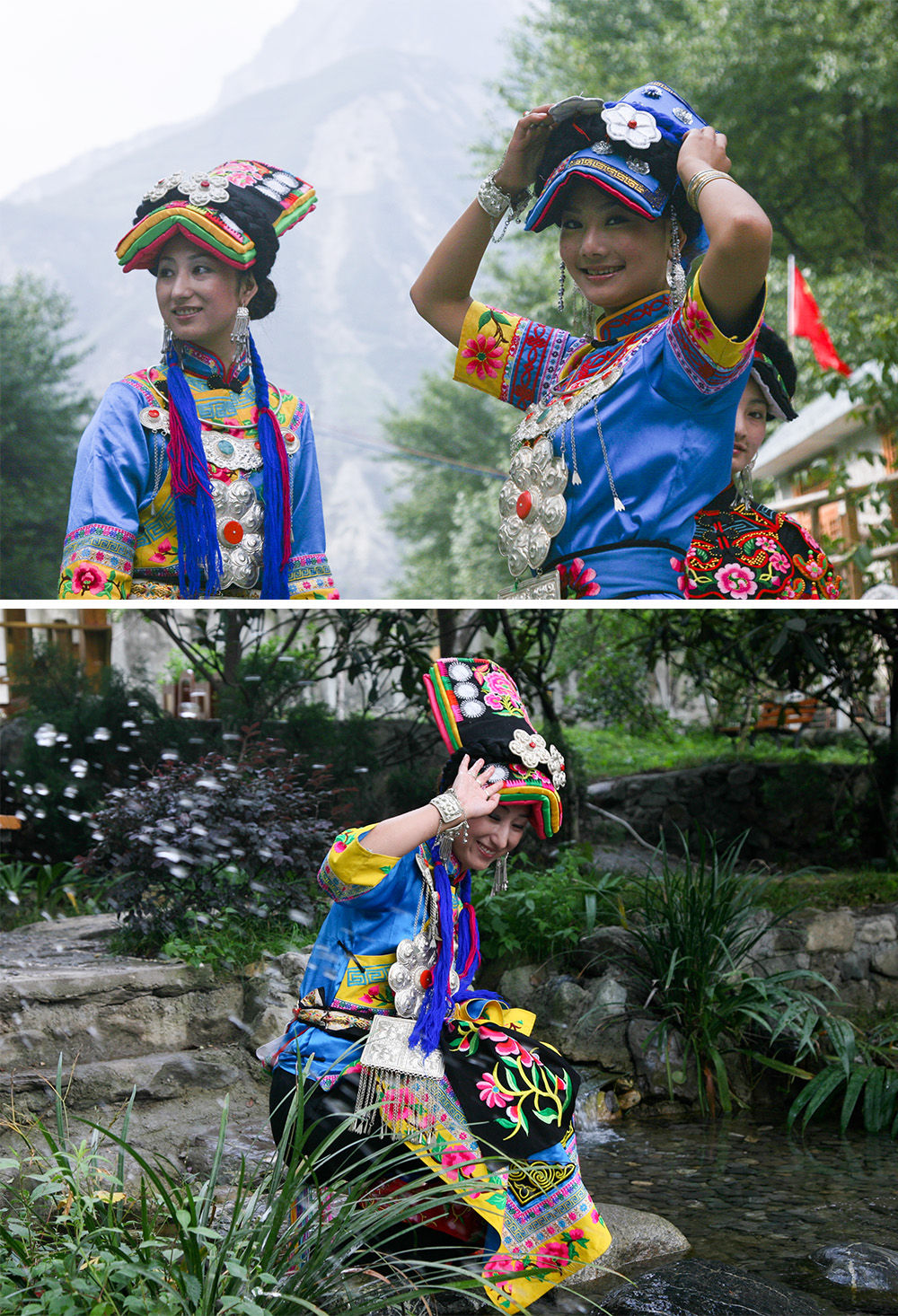 婉转羌笛、绚丽羌绣、热情羌舞……地美人亦美的牟托,民俗风情尽在举手投足间。特别是羌族女子的服饰,精美绝伦。襟边、袖口、领边等细微处也是羌绣的花边,腰系绣花围裙和飘带,脚穿云云鞋,佩戴银簪、耳环、耳坠、银牌、手镯、戒指等饰物。