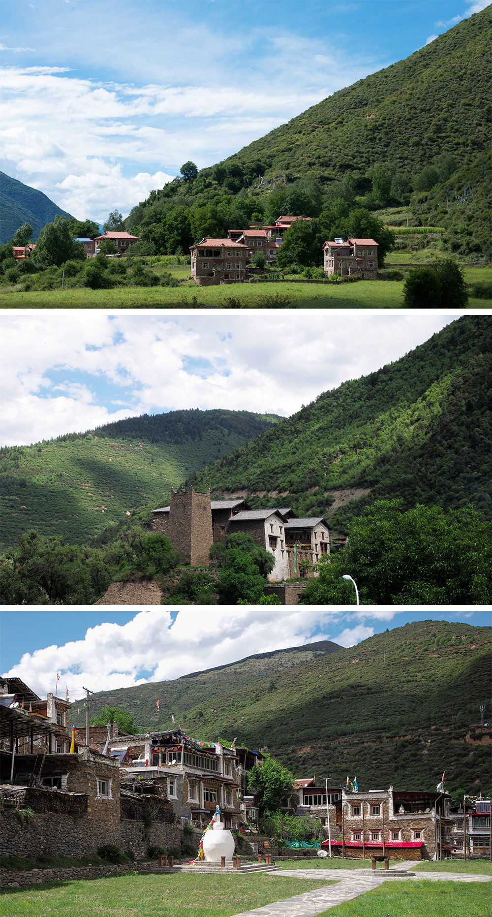 道路两旁的庭院,错落有致。在阳光的照耀下,幽雅静谧。那些就地取材,施工精细的碉楼、石砌庄房惊艳着过往游客,每一方石片都展示着它独特而精湛的技术。