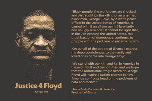 △加纳总统纳纳·阿库福-阿多在其社交媒体账号上呼吁美国解决种族歧视问题