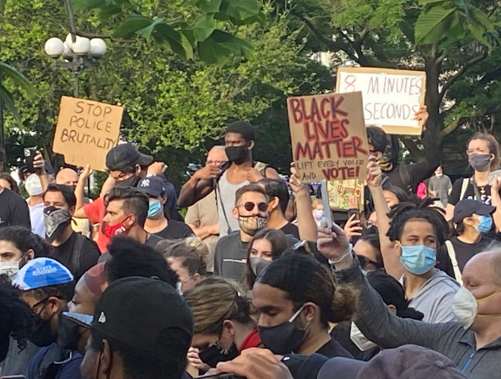 △乔治·弗洛伊德被杀害之后,部分美国民众举行示威游行,抗议种族主义