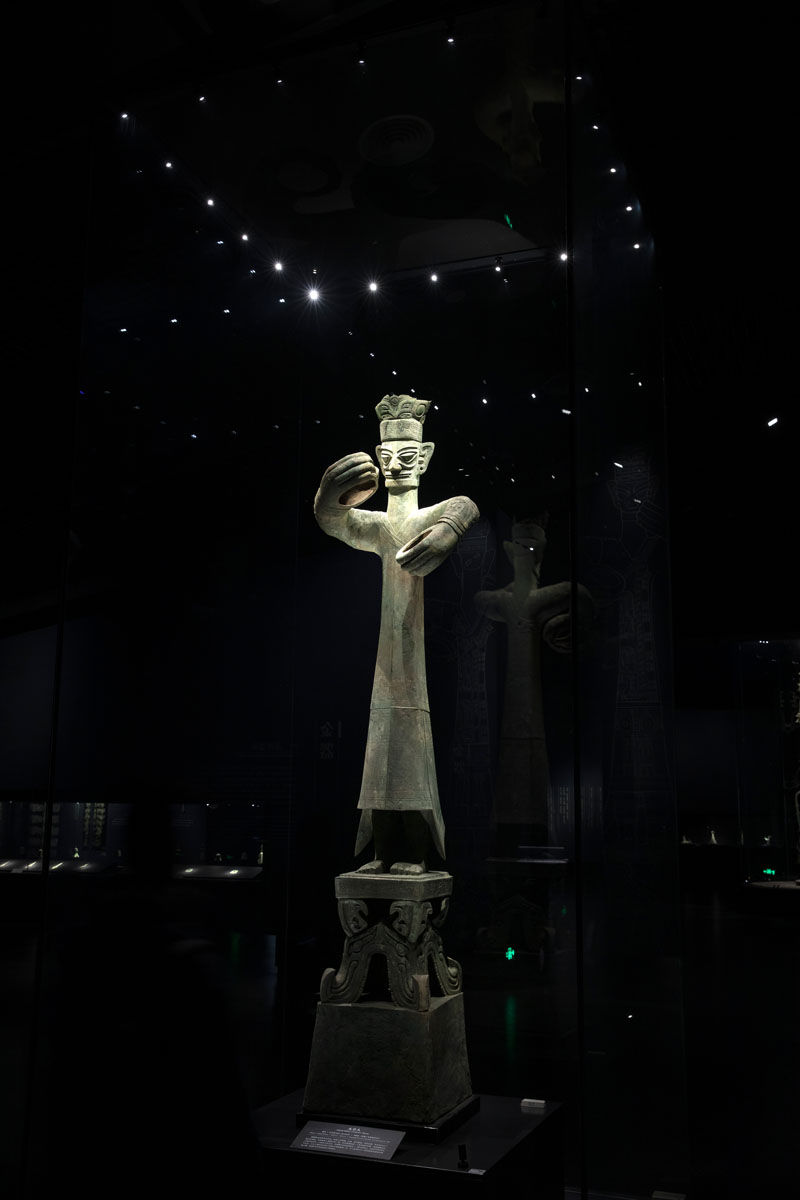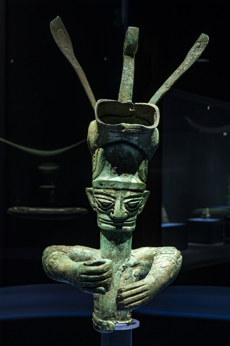 这是在位于四川省广汉市的三星堆博物馆拍摄的1986年出土于三星堆2号“祭祀坑”的青铜大立人(3月17日摄)。