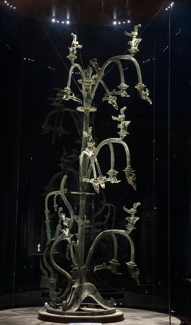 这是在位于四川省广汉市的三星堆博物馆拍摄的1986年出土于三星堆2号“祭祀坑”的青铜神树(3月17日摄)。