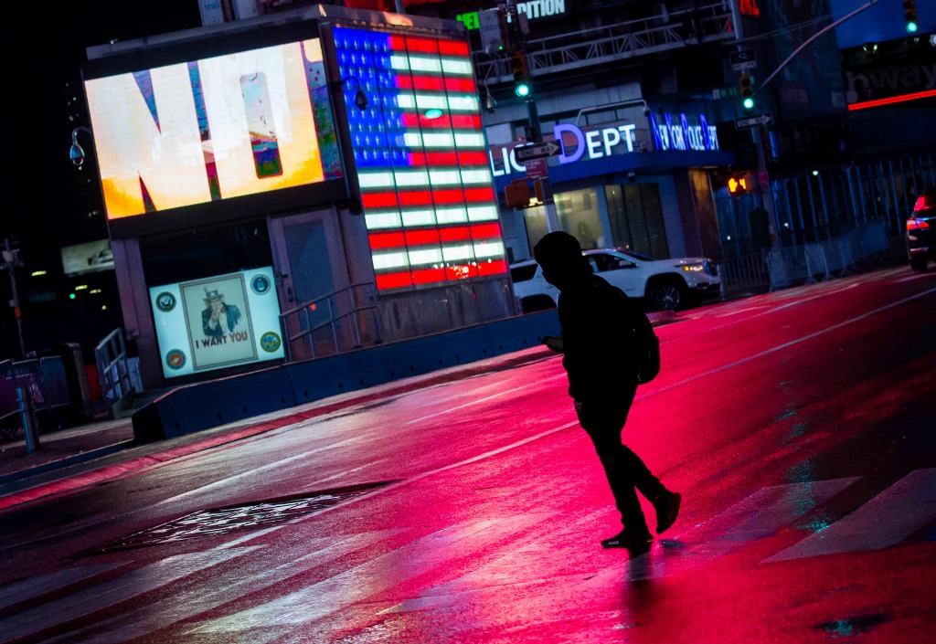 3月24日,行人在美国纽约时报广场过马路。(新华社发,郭克摄)