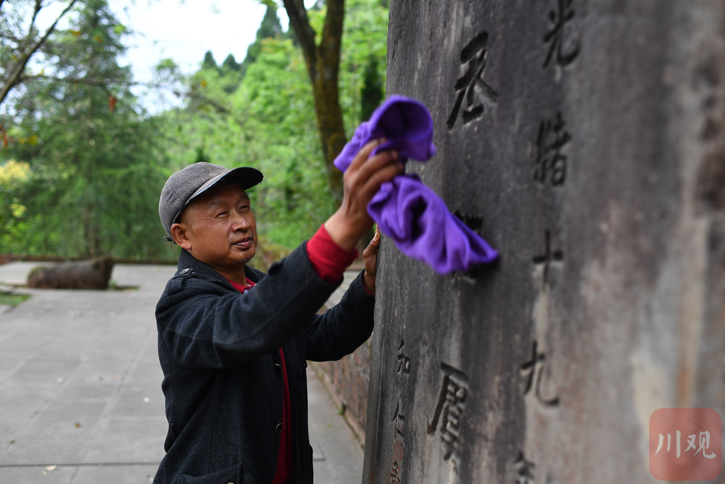由于宋克成年事已高,在2011年,宋建彬正式成为第14代守墓人。刚刚成为守墓人的宋建彬对“工作”并不熟悉,父亲宋克成就仔仔细细地叮嘱他、指导他。擦拭墓碑、清扫墓园、举行祭祀仪式……守墓人的职责单调又枯燥,但在宋氏家族看来,在苍翠青松间,能世世代代与英魂相伴,却是无上的荣耀。虞允文墓是仁寿县爱国主义教育基地,为了让前去祭拜的群众更了解虞允文,激发爱国热情,父子俩还承担起“讲解员”的职责,对英雄的故事,都如数家珍。“现在我就经常给儿子讲守墓的重要性,要让他以后来接我的班。”宋建彬虽然还年轻,但已经开始“谋划”下一代的传承了。