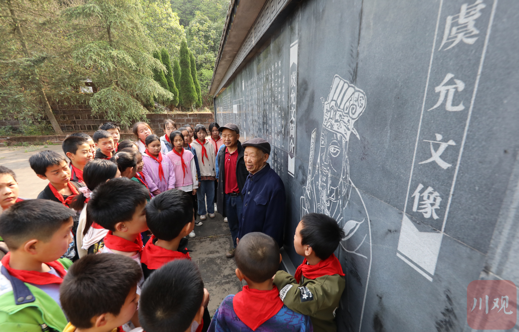 “虞允文幼时聪慧,七岁能提笔作文,……”清明节前,在眉山市仁寿县爱国主义教育基地—虞允文墓内,92岁的宋克成老人和他52岁的小儿子宋建彬一起,为前来扫墓的学生讲解南宋丞相、抗金名臣虞允文的生平事迹。