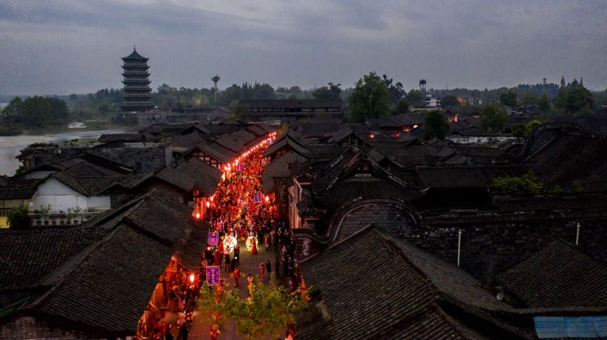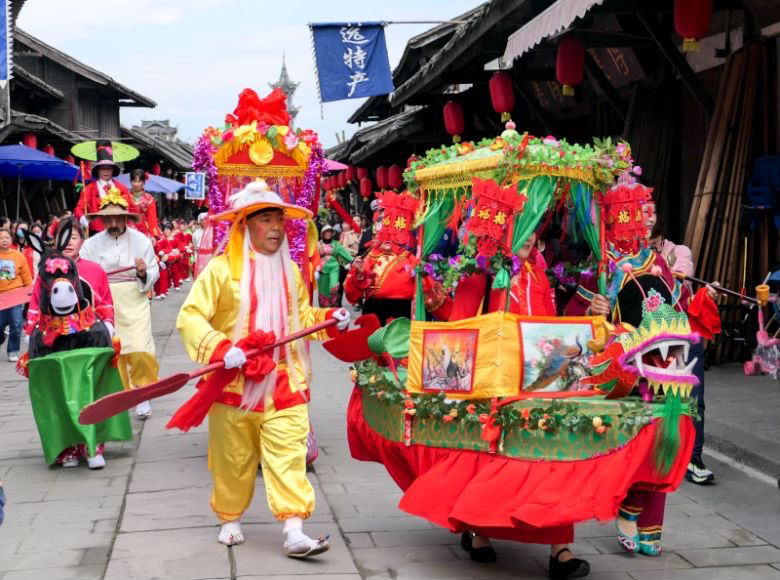 游客们跟随着游行队伍,穿行在古镇之中,既体验了独特的民俗文化,又感受了古朴的文化气息。在别处以纪念为主的时节,元通则以对春天美好的愿景,传承了远古先民对农耕文化的尊重、五谷丰登的向往、国泰民安的信心。