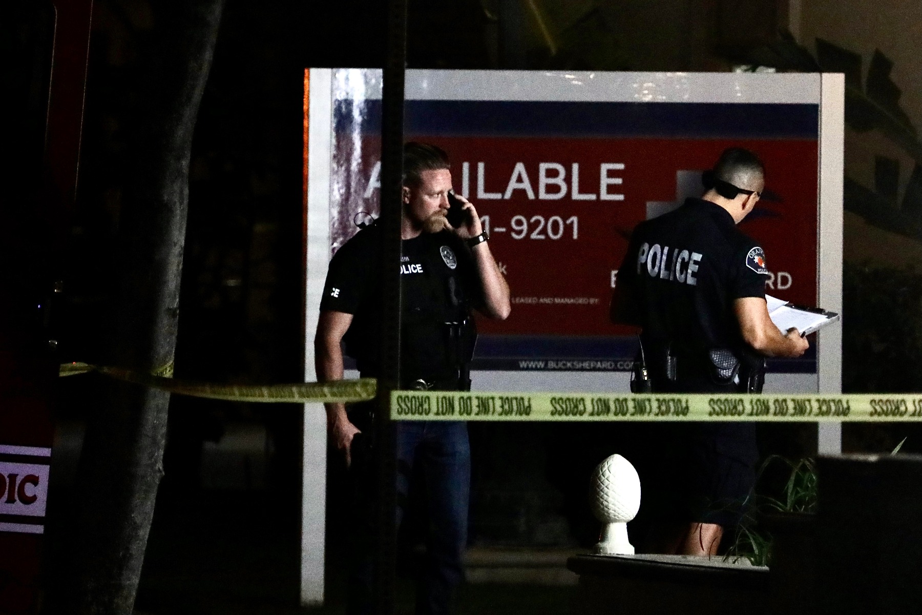 3月31日,美国加利福尼亚州奥兰治市发生枪击事件,造成包括一名儿童在内至少4人丧生。图为警方在枪击案现场工作。(新华社发)