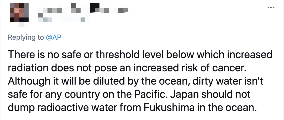 网民:“没有一个安全水平能使辐射的增加不提高患癌风险。尽管污水会被海水稀释,但对太平洋上的任何国家来说都不安全。日本不应该把核废水排放入海。”↓↓↓