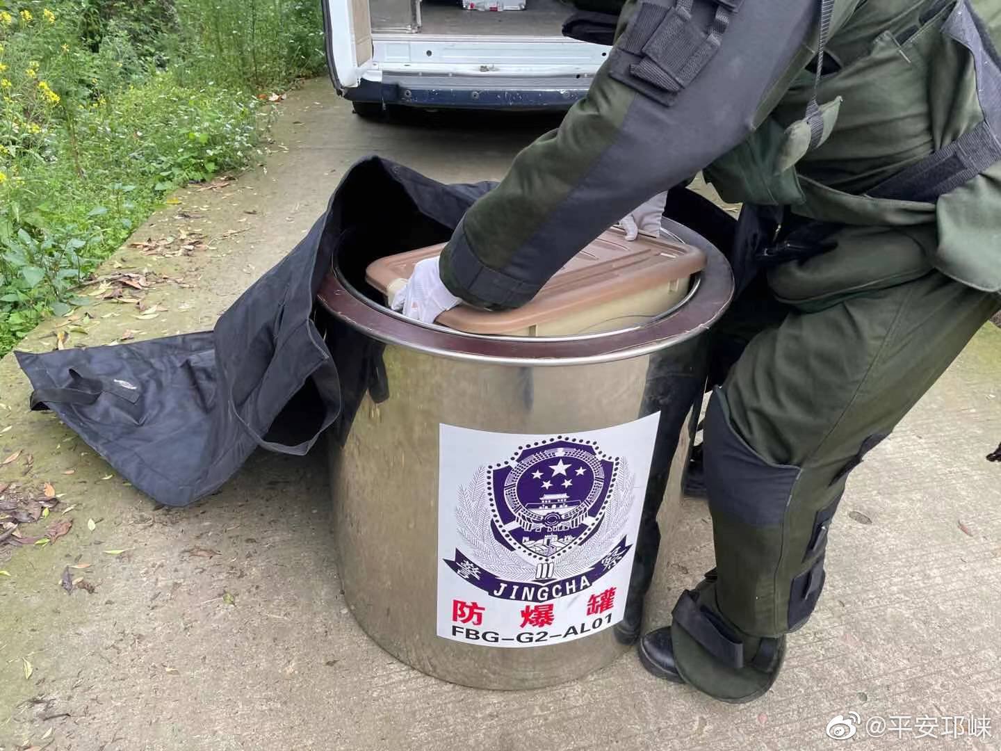 为减少当地群众恐慌,由排爆人员穿戴排爆服将爆炸物转移至排爆罐中,随后送至相关部门进行处理。