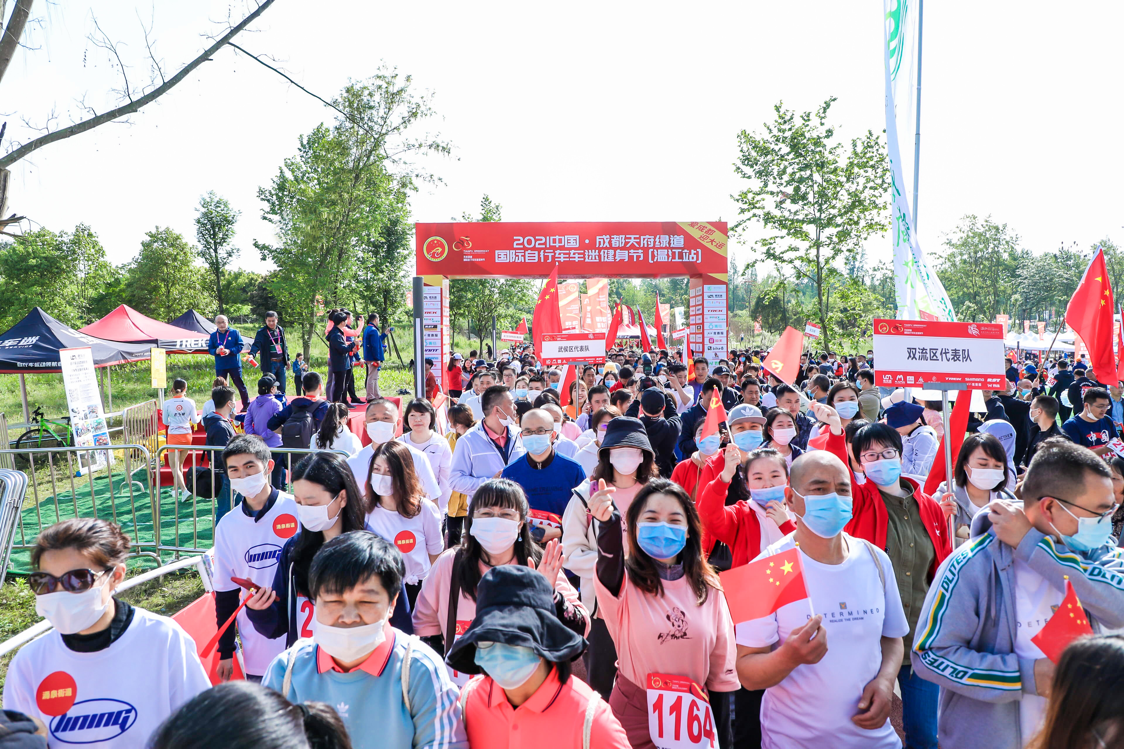 4月16日,由中国自行车运动协会、成都市体育局、中共成都市直属机关工作委员会与温江区人民政府共同主办的2021中国·成都天府绿道国际自行车车迷健身节(温江站)在温江北林绿道康家浩湿地公园拉开帷幕,2000多名自行车运动员和爱好者在可“遥望雪山”的北林绿道上畅快骑游,在风景如画的春天里竞速比拼,共享崇尚运动的生活新风尚。