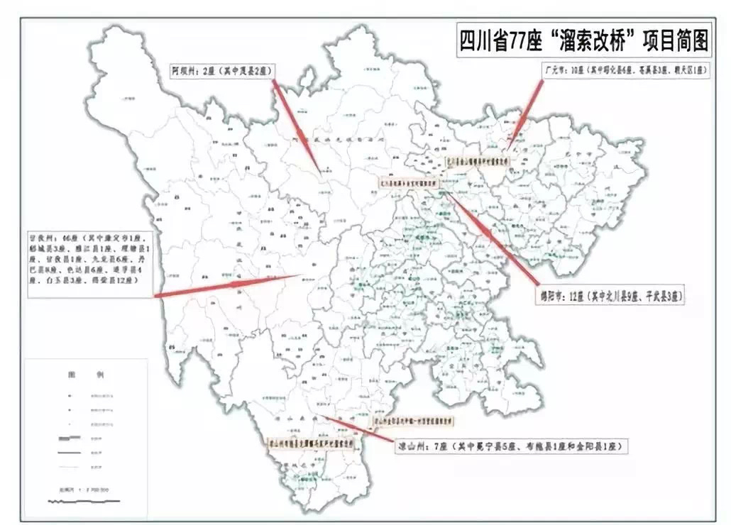 四川省77座“溜索改桥”项目简图