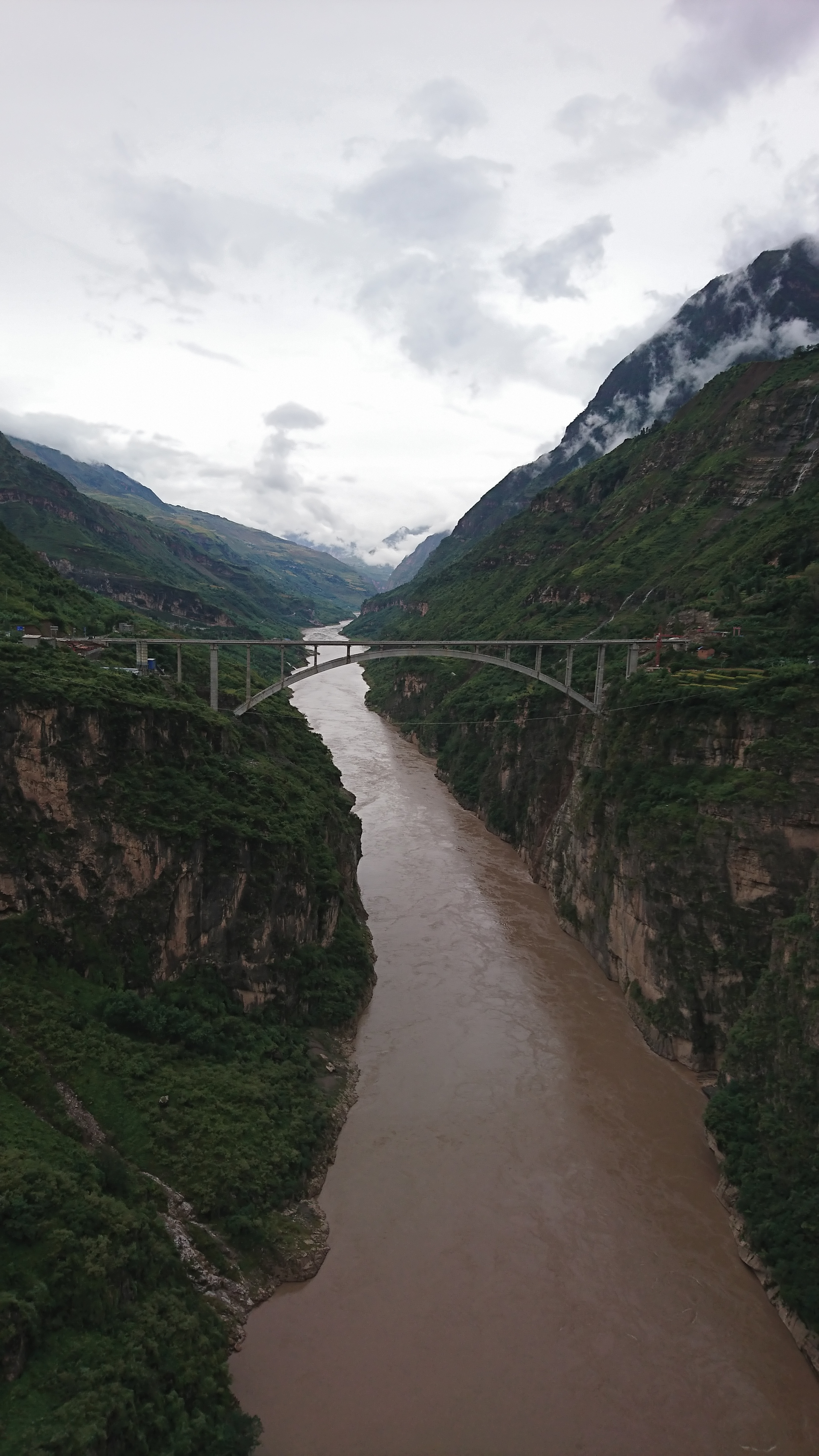 凉山州金阳县对坪镇一村“溜索改桥”工由四川公路设计院设计,该桥横跨金沙江,其北岸接金阳县对坪一村,南岸接云南省巧家县东坪镇二台坪子,项目全长约1.68公里,其中项目包含特大桥一座,桥长391.9米,桥面宽度10.5米,采用主跨280米上承式劲性骨架悬链线箱板拱桥,为四川省内该桥型第三大跨径大桥。设计施工时,需要克服面临地形地质条件复杂、风环境复杂、运输条件差、桥梁结构设计和施工工艺复杂等一系列技术难题。