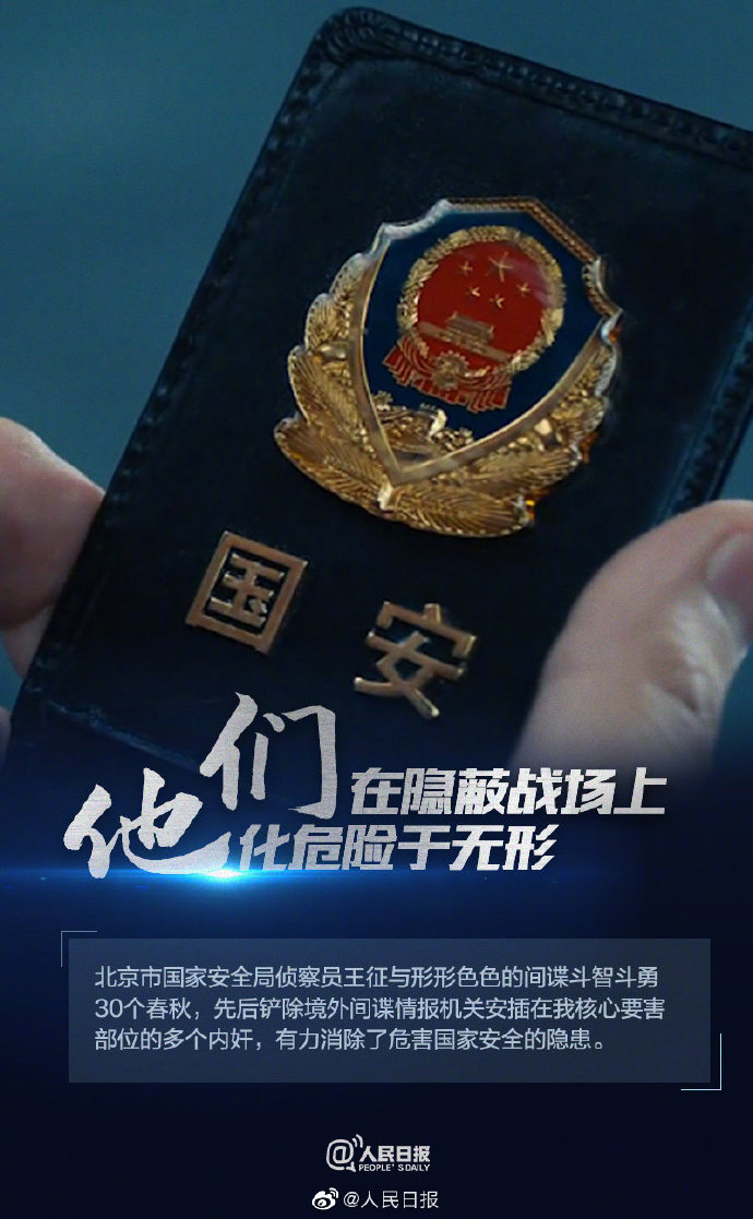 在近日公示的“中国青年五四奖章”入围名单中,国安干警一张没露脸的“肖像照”引发关注,有网友留言:虽不知道你的样子,但我知道你是英雄。国安警察出场自带“马赛克”,是极少穿警服的人民警察。他们隐没于人海之中,用背影守护国家安全。向他们致敬!