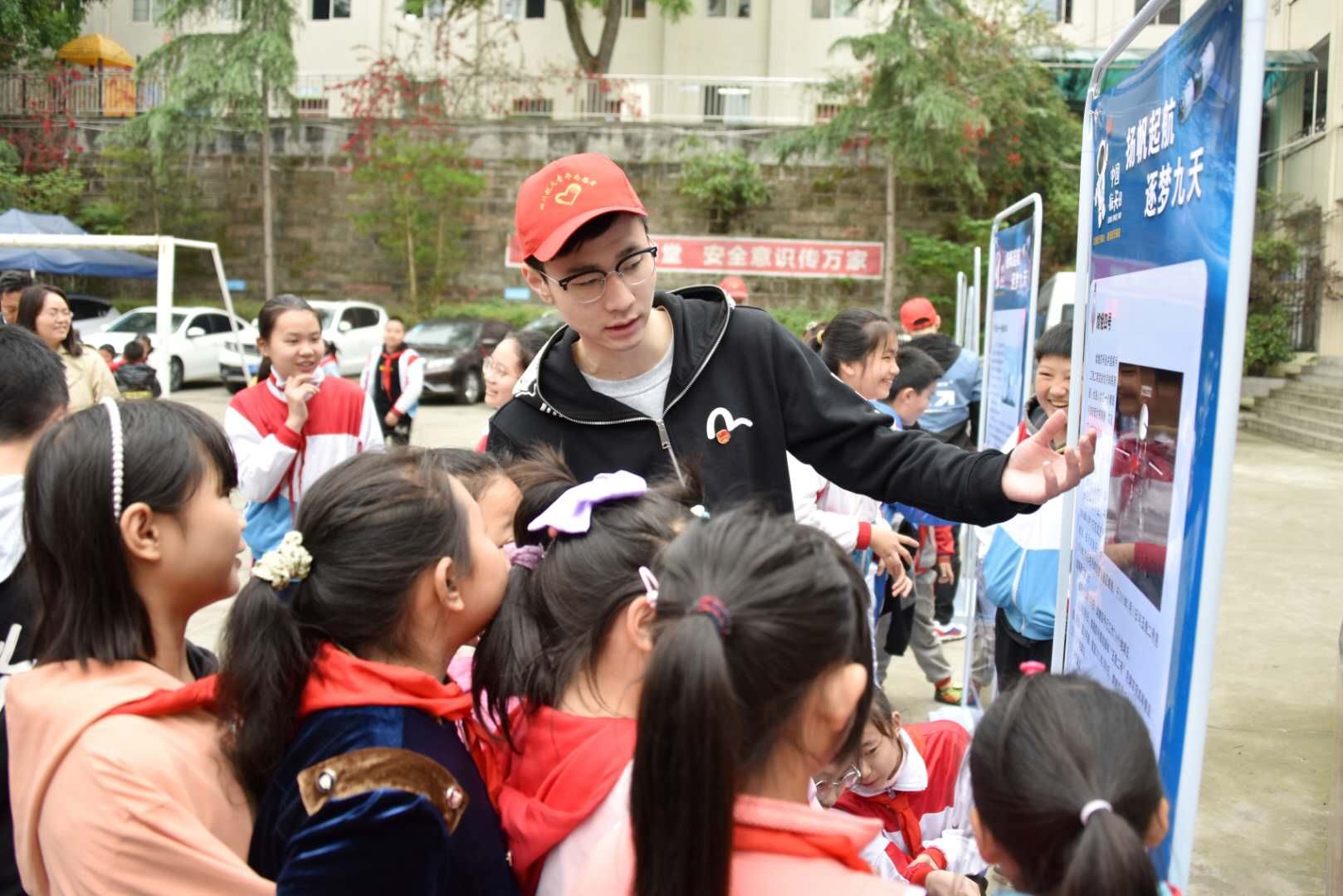 “你知道我们的‘胖五’有多高吗?你们这栋教学楼要五个叠起来那么高……”“孙悟空一个筋斗翻十万八千里厉害吗?我们的卫星早就飞出了过亿公里,孙悟空翻筋斗也要翻上千个才能到呢……”这是2021年航天日来临之际,中国航天科技集团七院所属的四川航天烽火伺服控制技术有限公司志愿者们在井研县宝五乡“中国航天烽火爱心之家”为孩子们开展航天知识科普活动。活动现场,志愿者们用通俗易懂、活泼生动的语言,向孩子们讲解了航天史上的重大事件。现场还开展了“成都工匠课堂”,邀请“成都工匠”张金德现身说法,为孩子们讲解了自己的成长之路,鼓励孩子们要热爱祖国,学会奉献,勇于攻坚。