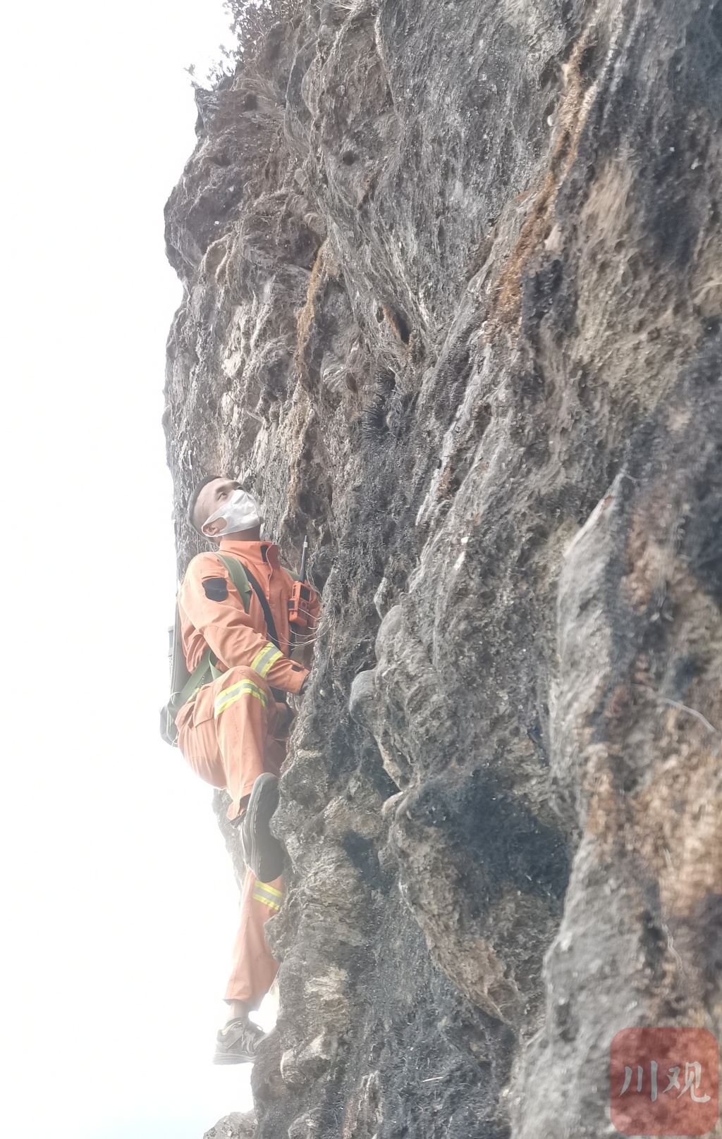 “攀的是悬崖绝壁,走的是羊肠小道,危险性很大,我们选的都是手脚麻利的队员,他们每个人还背着50斤水。”邱衣母子率尖刀班抵达火场后,设立观察哨并选好安全避险区域。