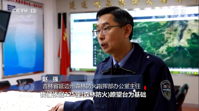 延边州森林防火指挥部办公室主任 赵强:我们依托225座森林防火瞭望台为基础,构建了卫星林火监测系统,到直升机无人机空中巡护,到人工瞭望员的人工瞭望和视频监控系统,再到地面专职人员巡查系统,打造这样一个立体式的森林防火网格化的预防体系。