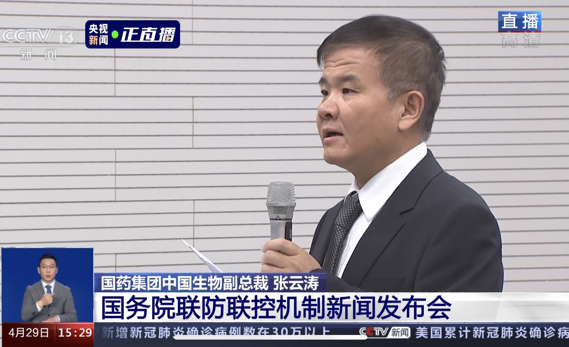 国药集团中国生物副总裁张云涛。图片来源:央视新闻