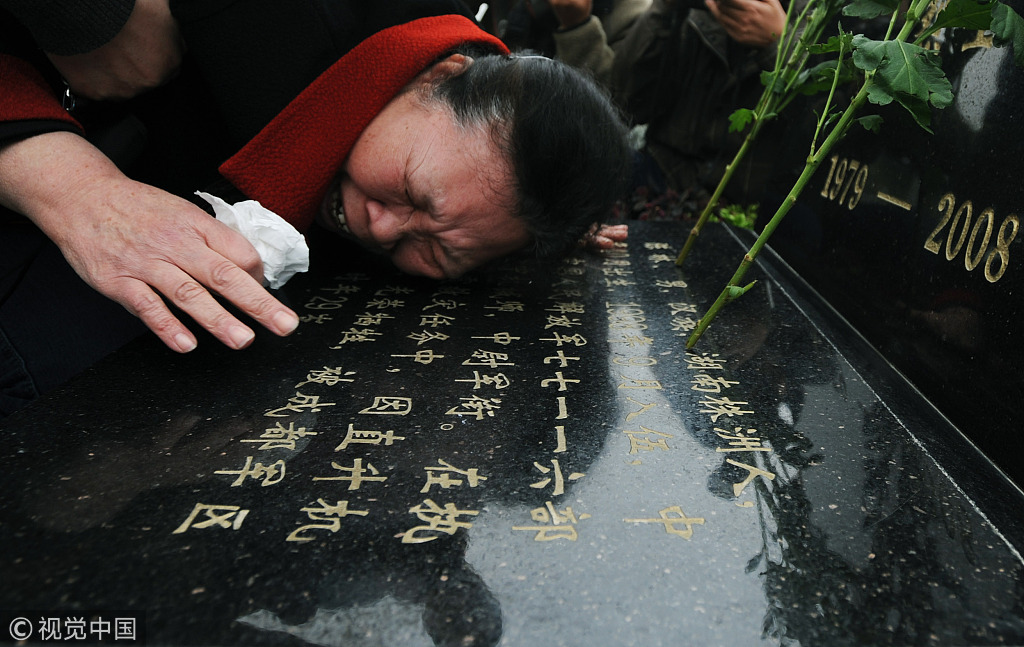 2010年4月2日,成都军区陆航某团在成都市烈士陵园为邱光华、李月、王怀远、陈林、张鹏五位烈士举行骨灰安葬仪式。陈林的母亲在他墓碑前痛哭不已。