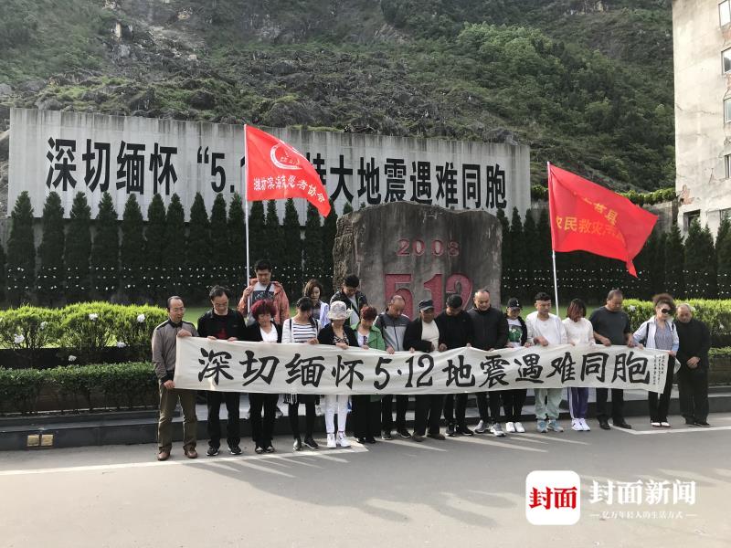 还有一队来自山东莒县的农民救灾志愿者队伍前来祭奠,20人中有3人曾参加过当时的救援。