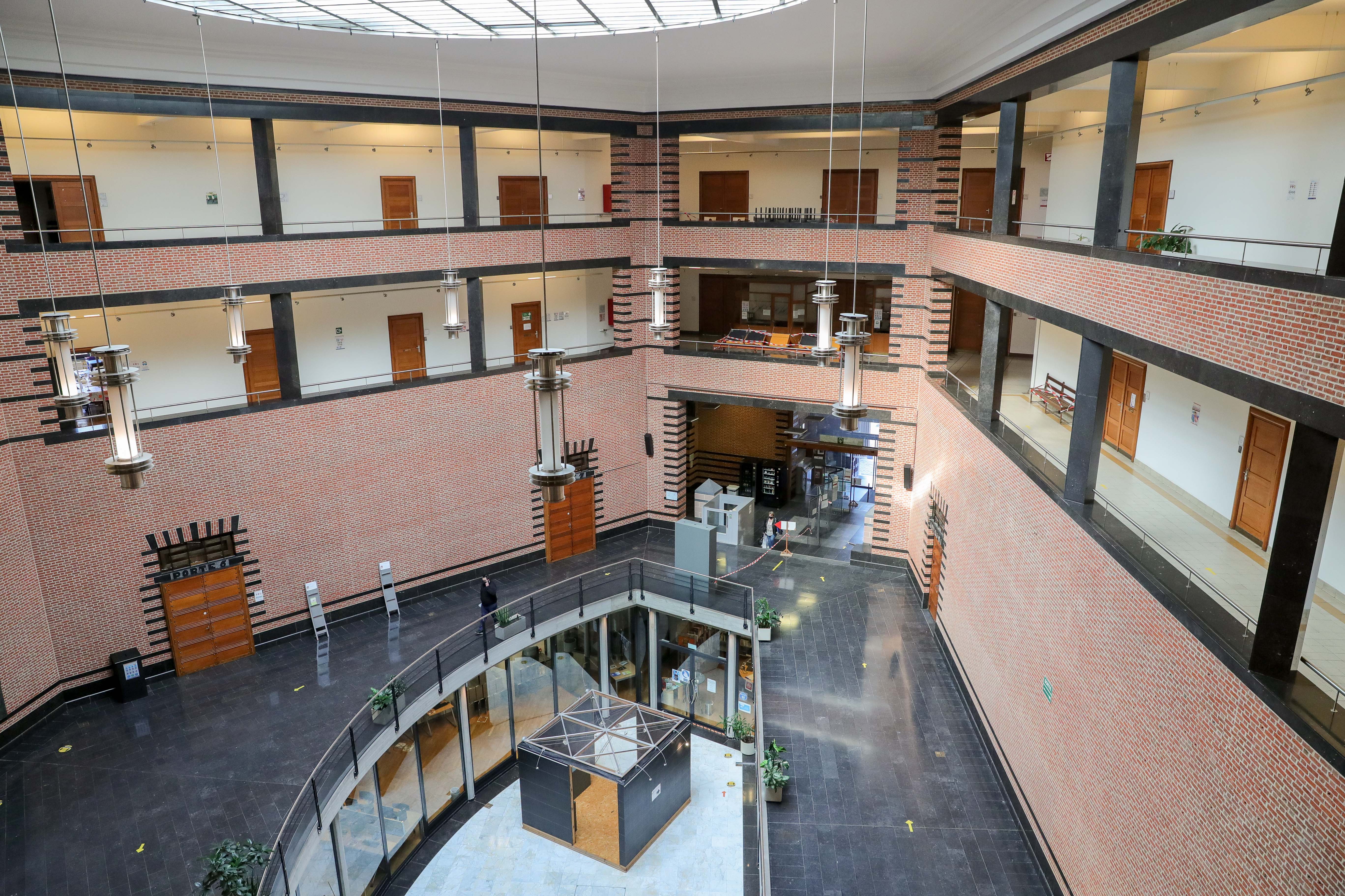 4月20日拍摄的沙勒罗瓦劳动大学图书馆。新华社记者郑焕松摄