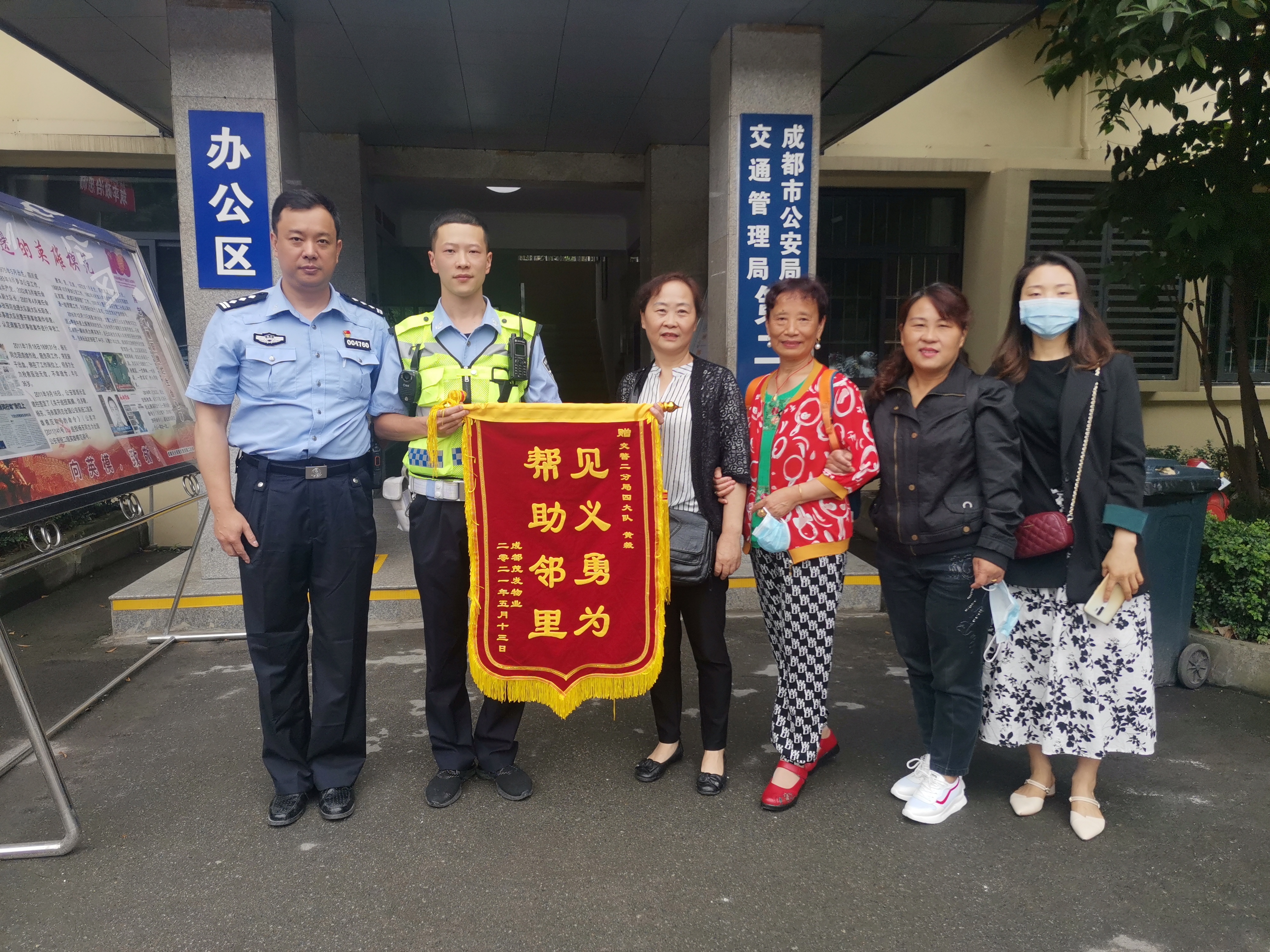 5月17日,休假回来的辅警黄毅在成都交警二分局,收到社区居民代表们送来的锦旗,感谢他此前奋不顾身冲进成华区花径路一小区,及时控制火情,并疏散人员,保障大伙儿的生命财产安全。“后来我们才打听到,这个救火的小伙子是交警二分局的辅警,这次专程来感谢他。”小区居民说。