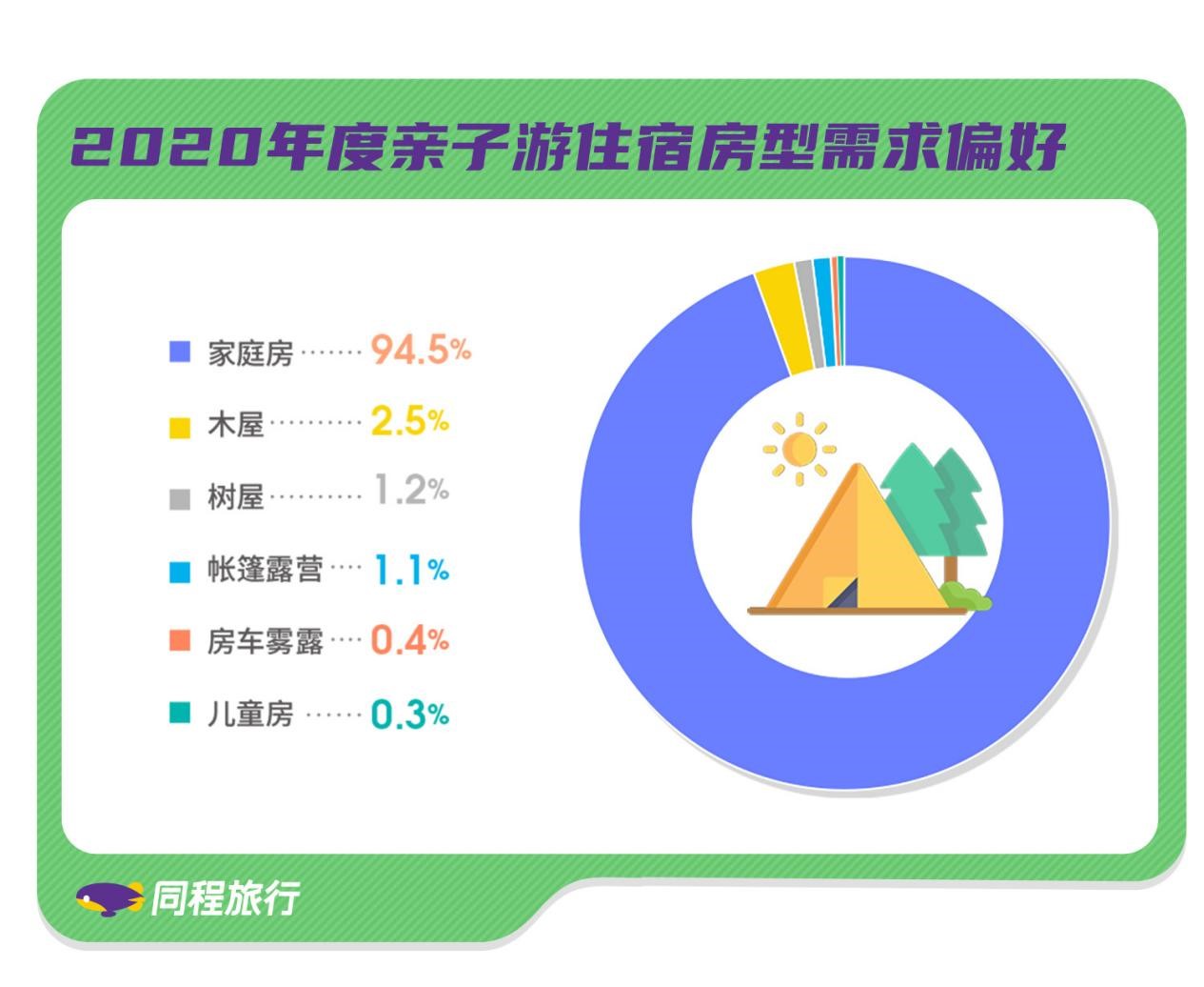 随着主力消费人群的世代更替,“80后”、“90”后在消费理念方面更加新潮且更重视品质,从而带动亲子游市场向多元化和品质化方向发展。数据显示,除了常规酒店的家庭房、儿童房外,木屋、房车露营、帐篷露营、树屋等非标准住宿也正在成为亲子住宿的热门选择。尽管非标住宿在亲子住宿中的占比暂时处于较低水平,但目前正处于高增长阶段。