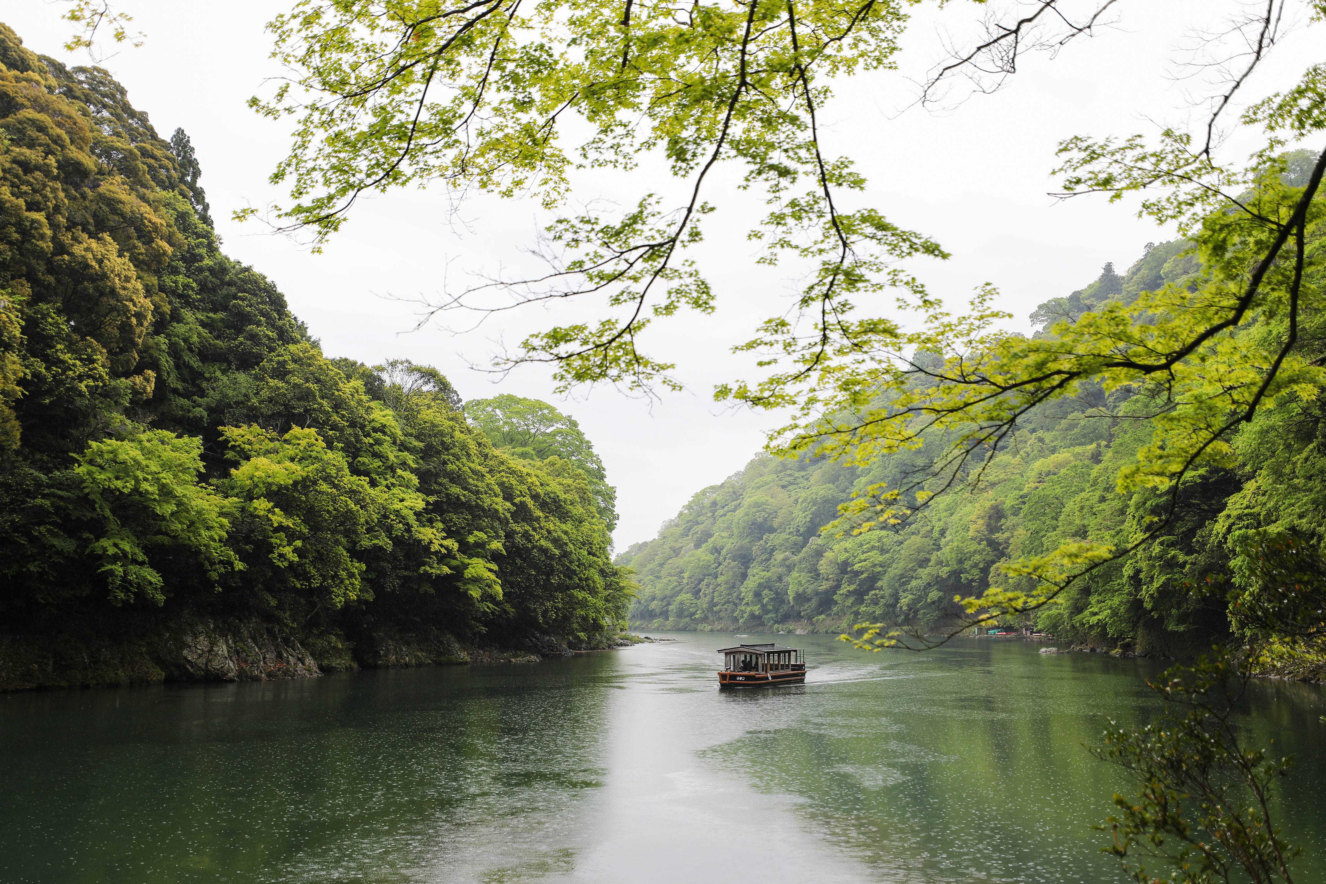 这是4月28日在日本京都拍摄的雨中岚山一景。新华社记者杜潇逸摄