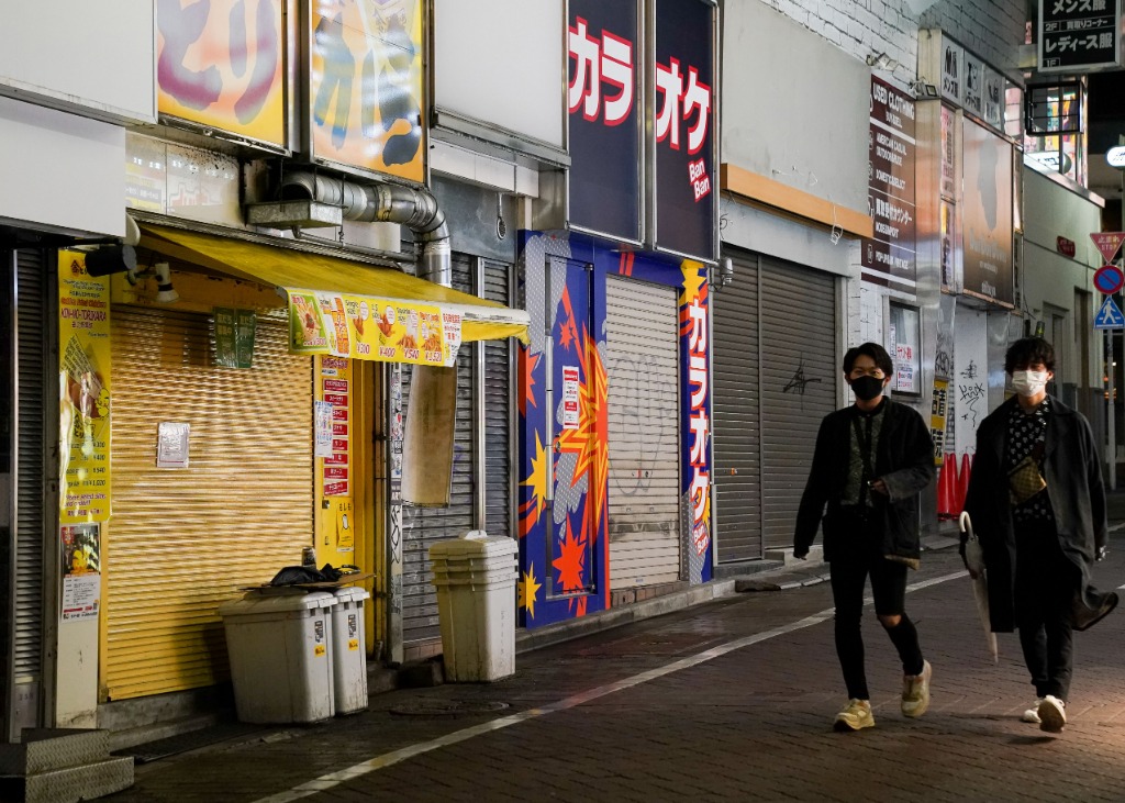 5月7日,行人经过日本东京结束营业的店铺。(新华社发,克里斯托弗·朱摄)