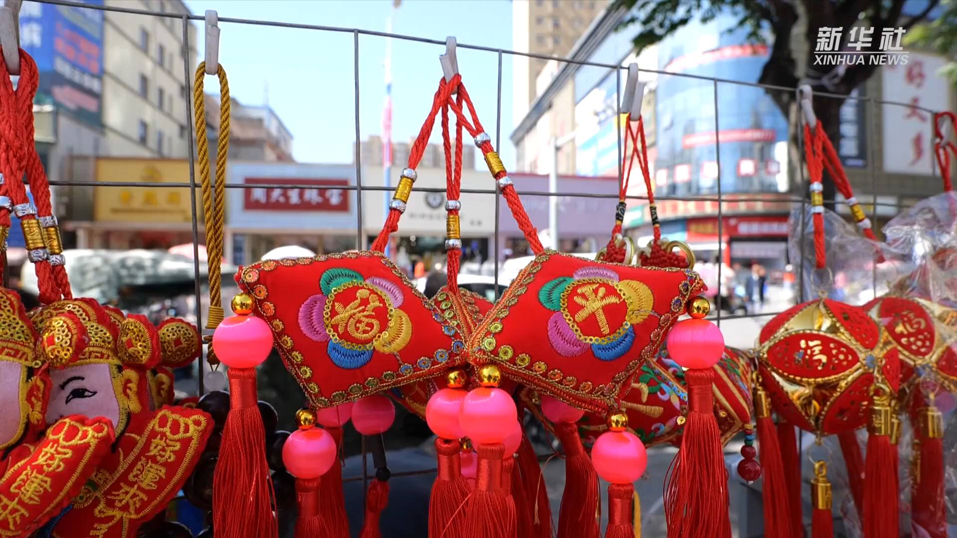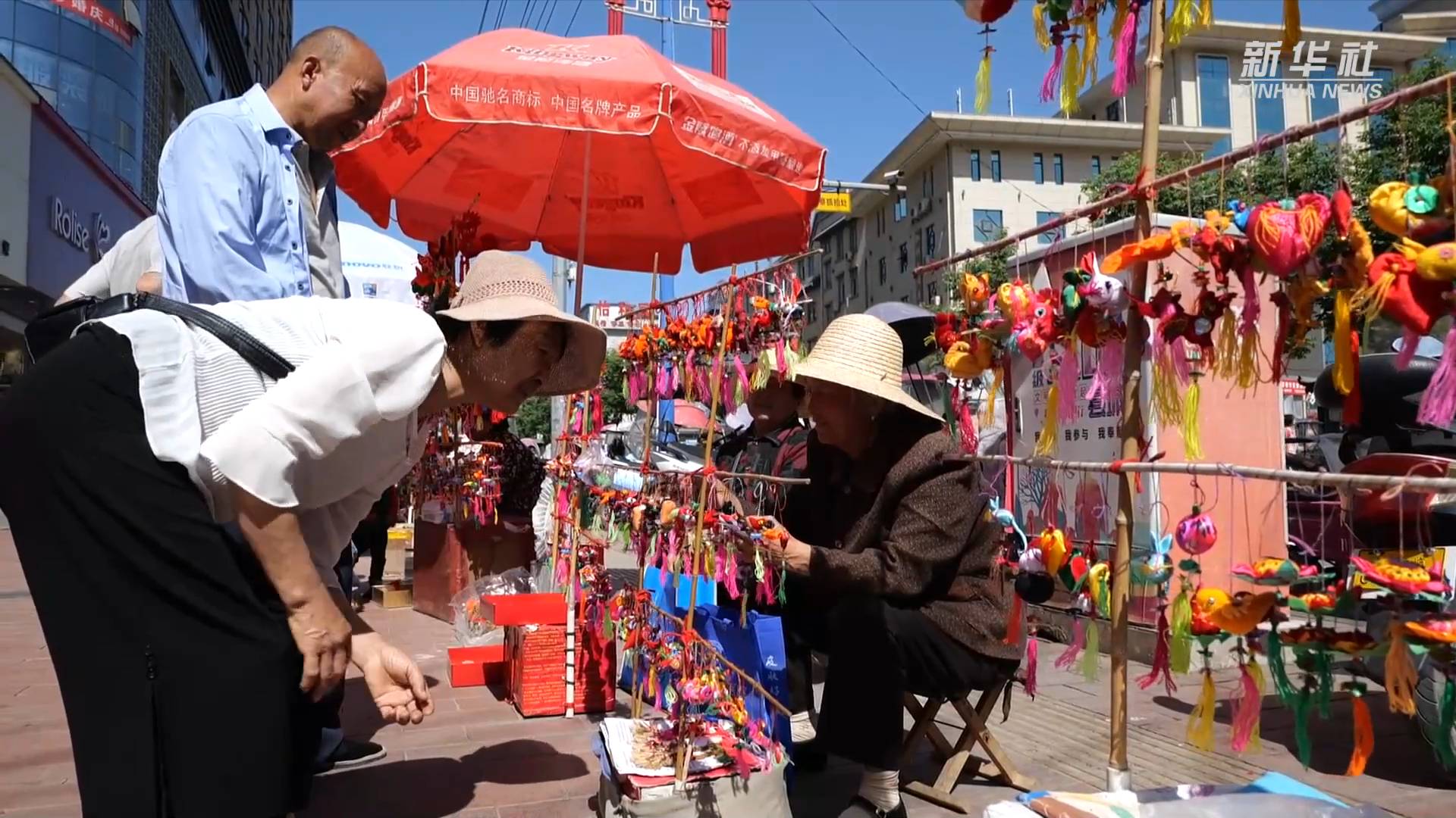 临近端午,陕西省陇县县城西门口广场上,各种样式新颖、惟妙惟肖的传统香包挂满了街头,浓浓香味沁人心脾,吸引了路人上前选购。