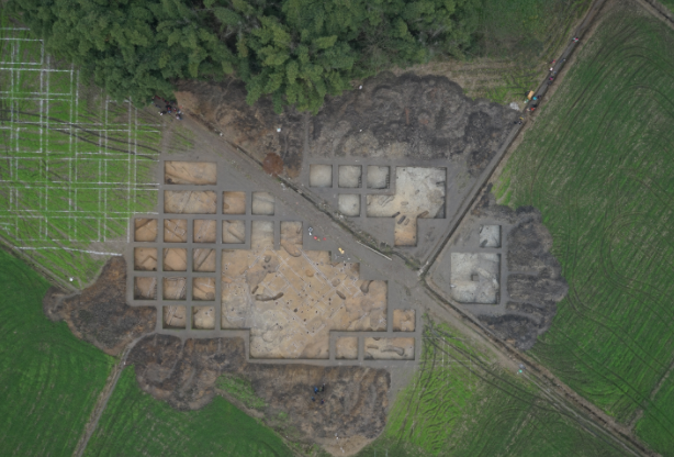 宝墩遗址2020年发掘疑似水稻田层面航拍图