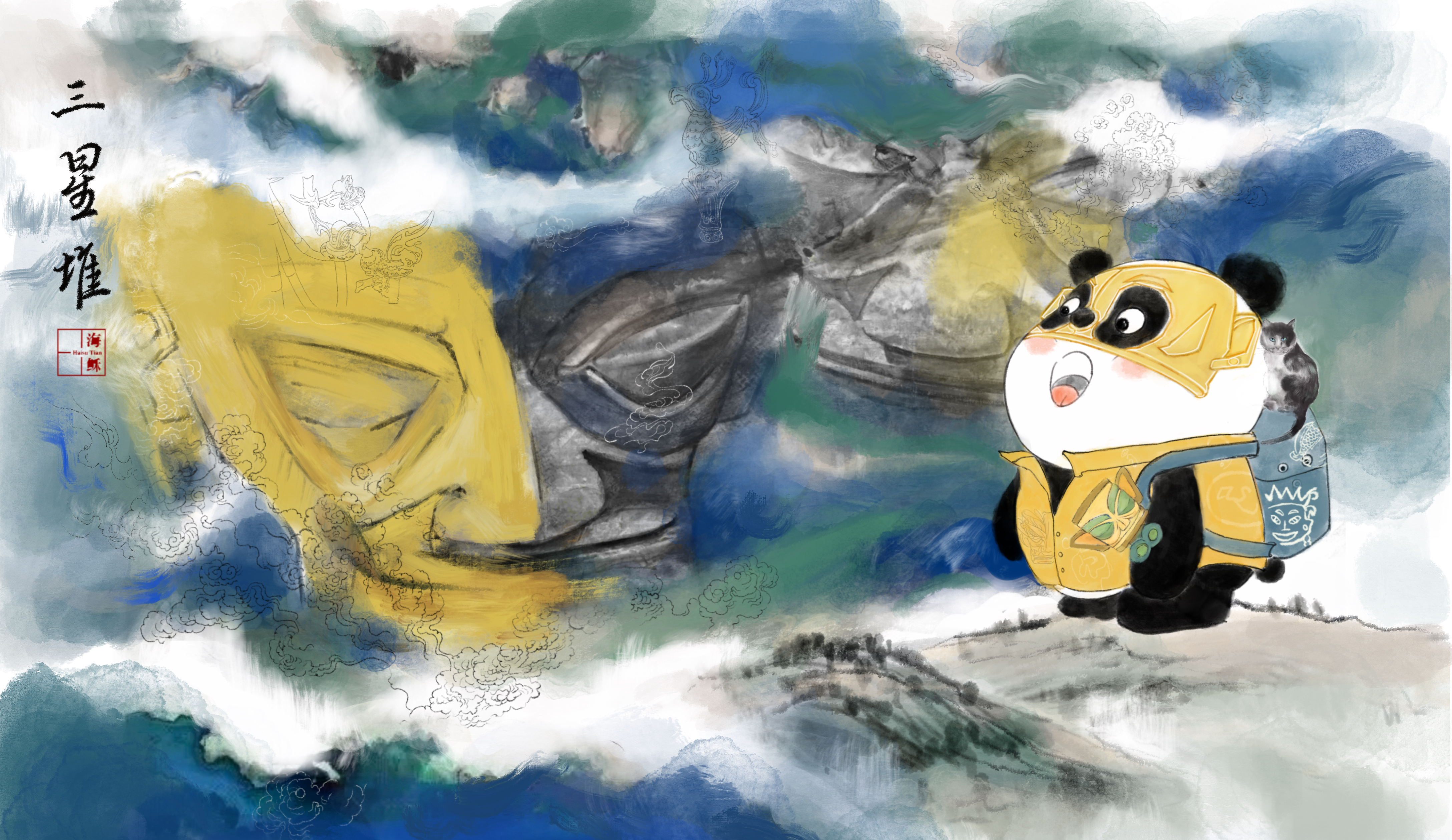 “前五天基本都在不停地修改、完善熊猫形象,我们想把四川的特色元素用最适合的方式呈现出来。”海稣说,为了呈现最动人的效果,海稣及其团队绘制了上百张草图,仅三星堆背景就曾画了4个版本。