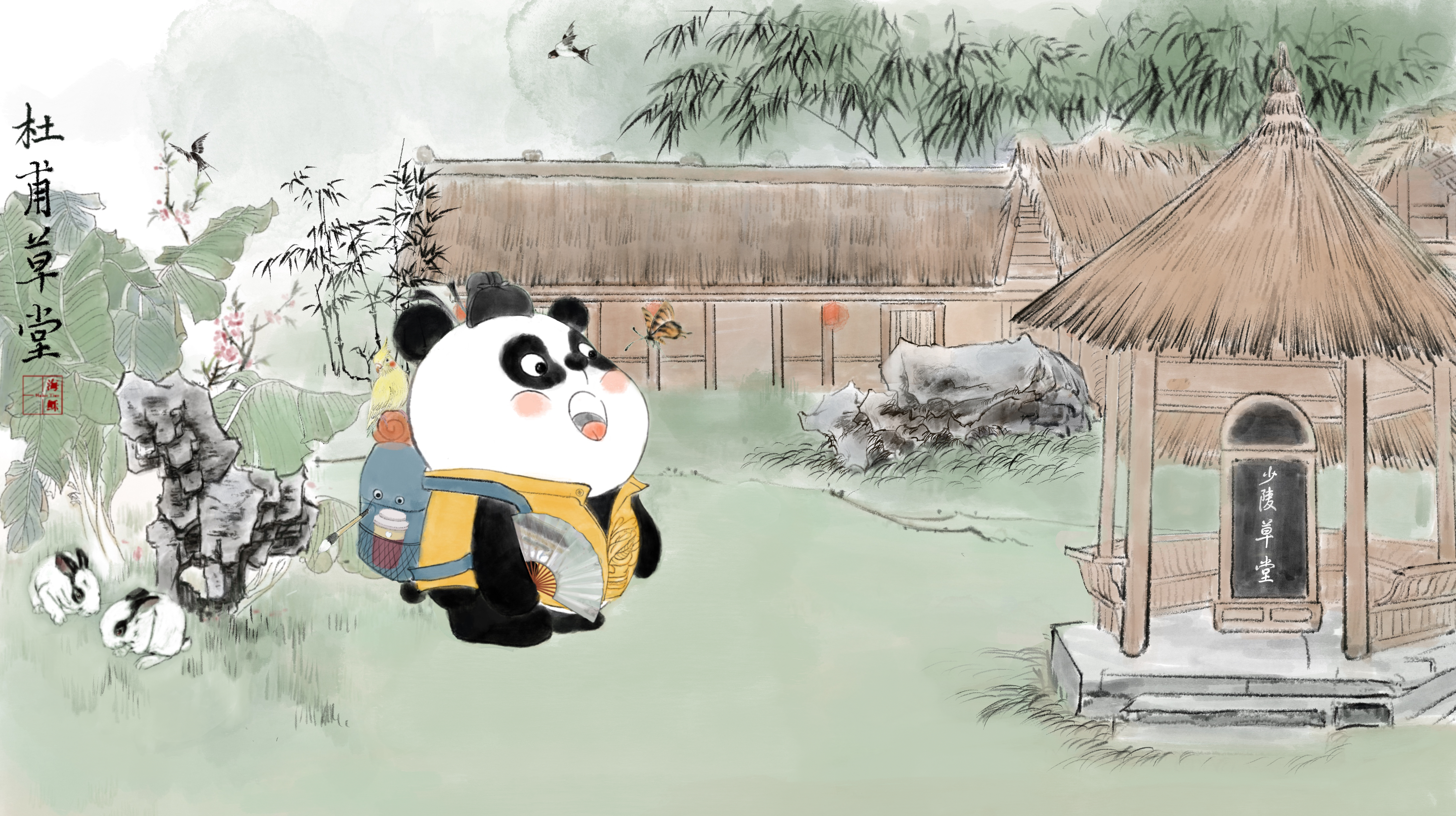 “水墨是需要一笔一画创作的,每一张都至少要花20个小时。”为了能尽快让旅行熊猫与大家见面,10多天来她带领参与该项目的团队成员几乎每天只睡2、3个小时,经常连吃饭的时间都没有,时间被最大限度地用来创作。
