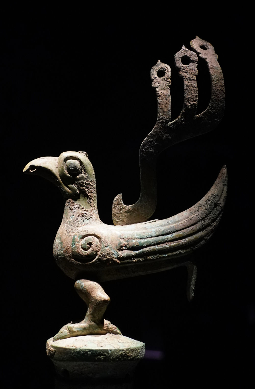↑6月7日在奉贤博物馆拍摄的四川广汉三星堆博物馆藏文物“铜鸟”。