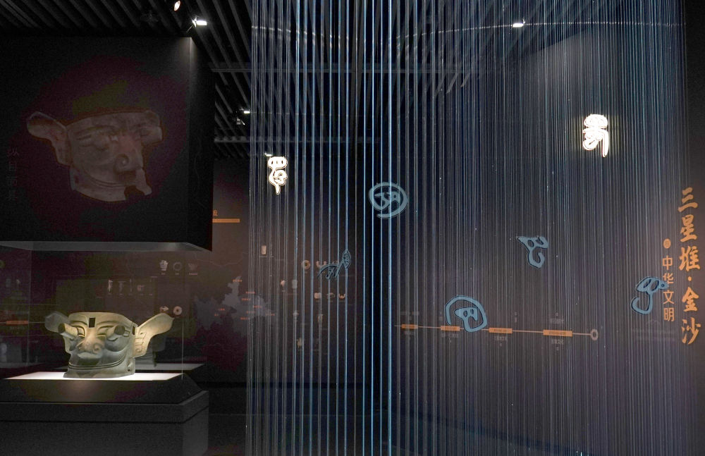 ↑6月7日拍摄的奉贤博物馆“古蜀之光”三星堆·金沙遗址出土文物大展展厅入口。