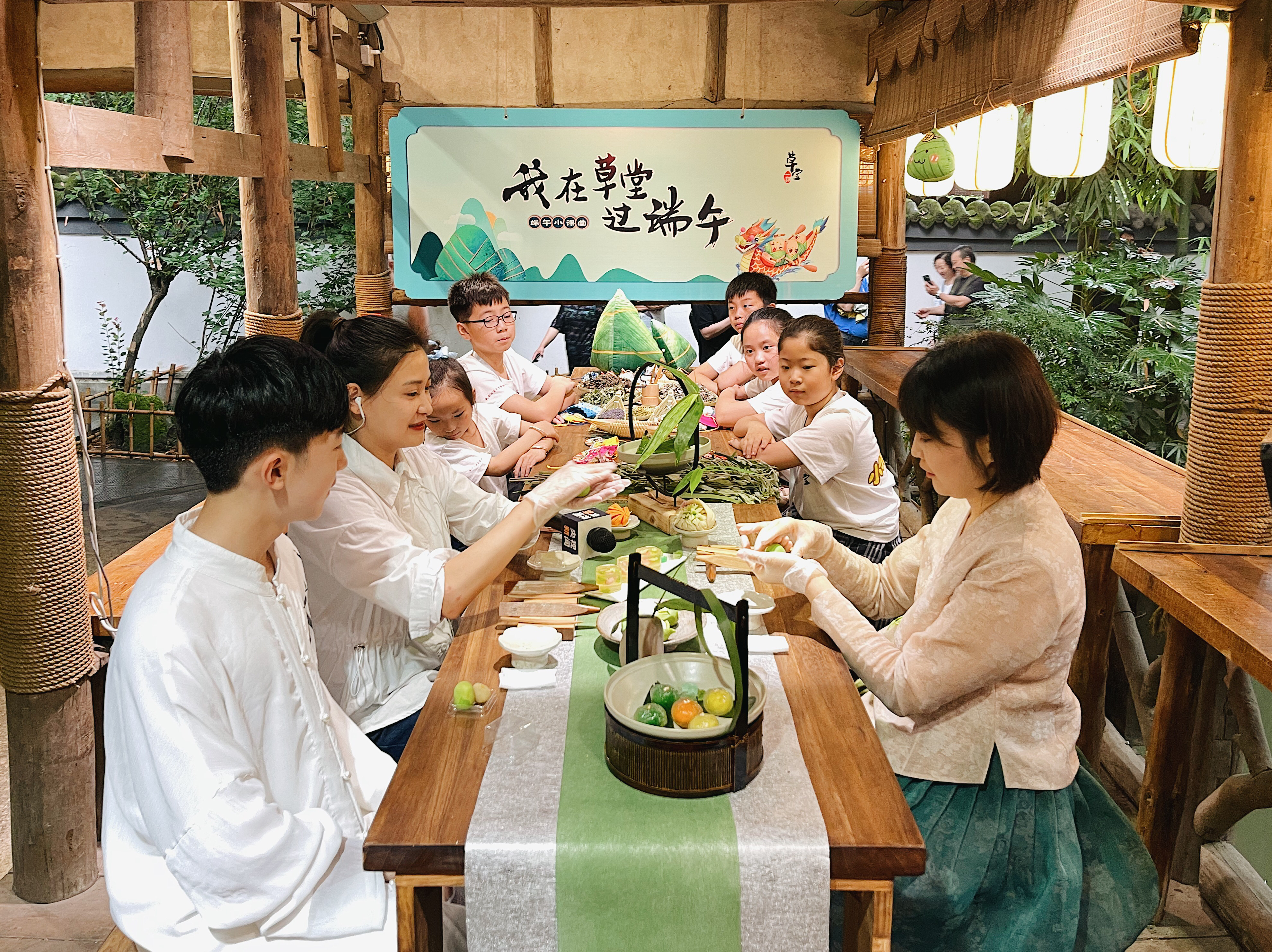 “彩线轻颤红玉臂,小符斜挂绿云鬓。”诵诗歌、包粽子、做香囊、挂艾叶……6月14日,农历五月初五,“我在草堂过端午”——草堂一课端午特别课堂在成都杜甫草堂茅屋景区开课。