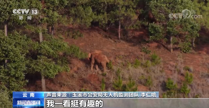 玉溪市公安局无人机监测团队 李仁培:我一看,挺有趣的,它站在那个地方对着一个小松树,小松树比它的身子还矮一点儿,它抬起那个腿就不停地往后蹬那个小松树,我就突然间联想起来前几天有两个小象相互踢腿打闹,我估计它是那几天打了之后可能觉得自己有些吃亏,然后单独找一个地方练一下。(总台记者 郭峰 蒋树林 王溪 云南台)