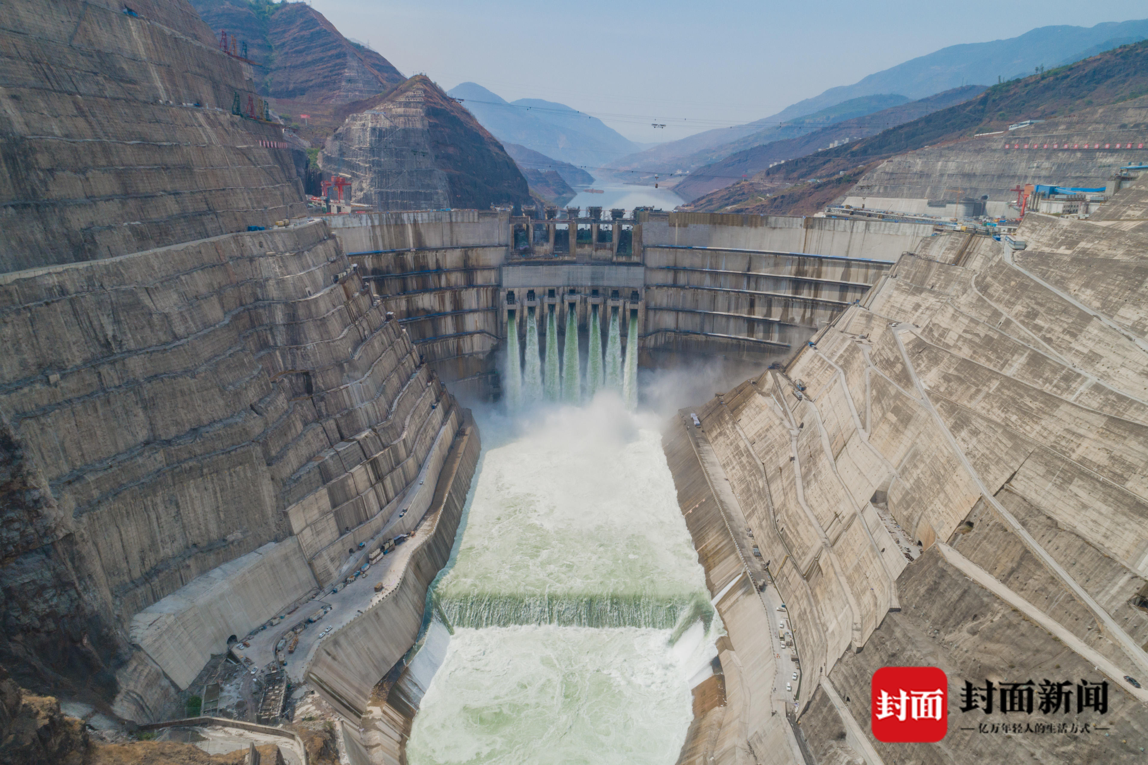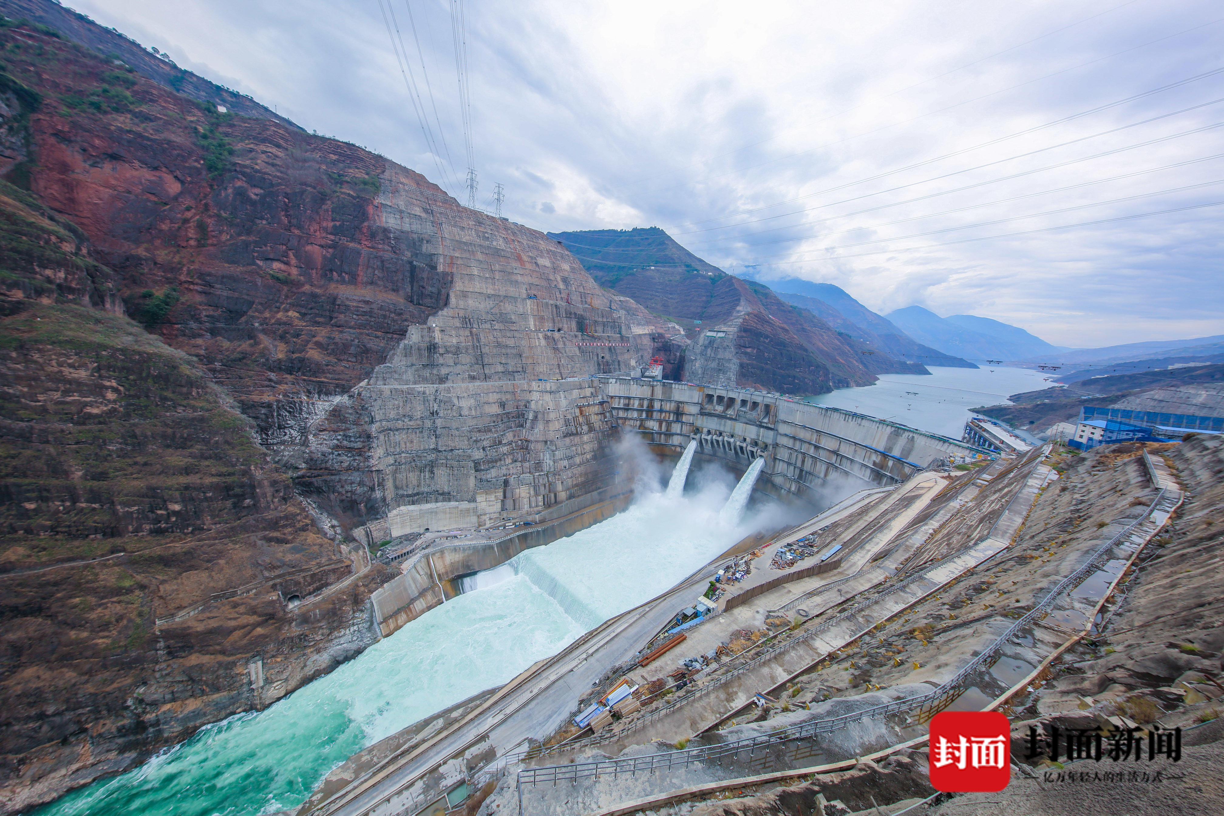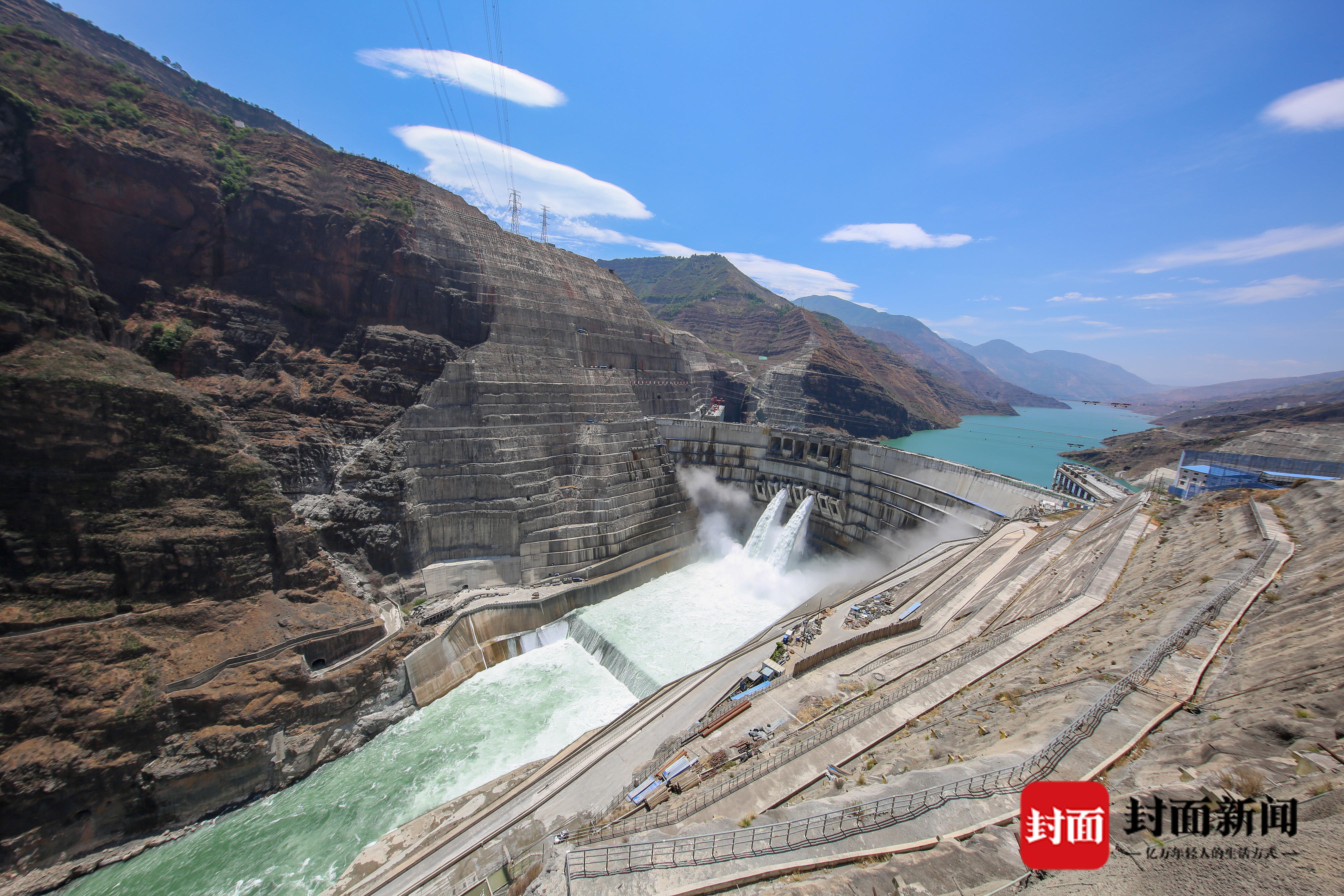 白鹤滩大坝首次过流。 谢雷 摄