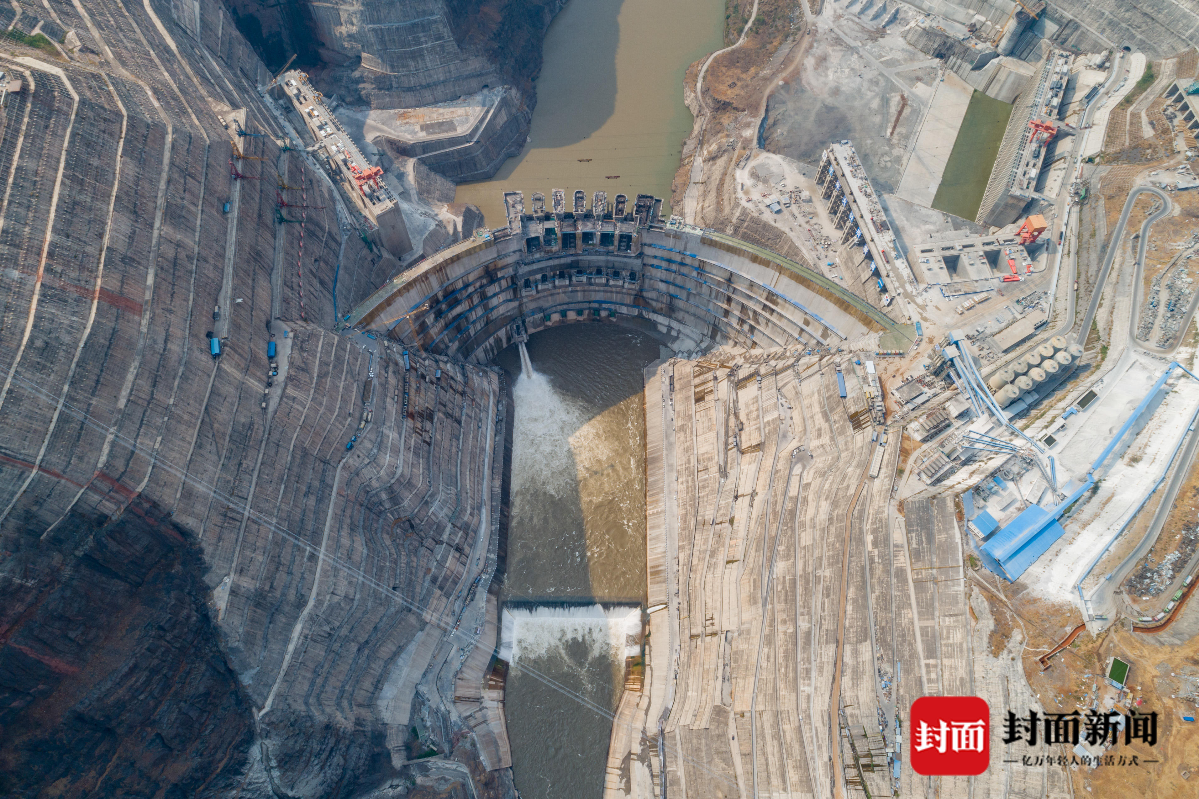 俯瞰白鹤滩工程。 谢雷 摄