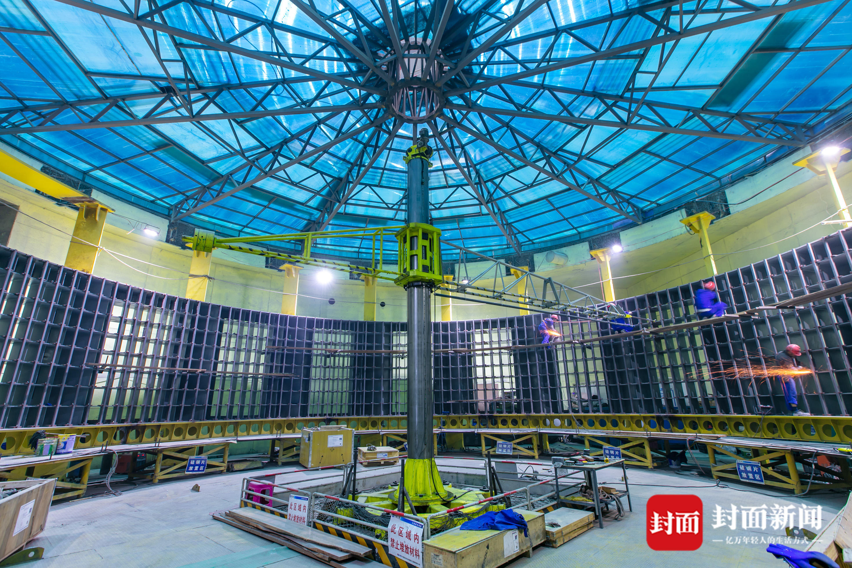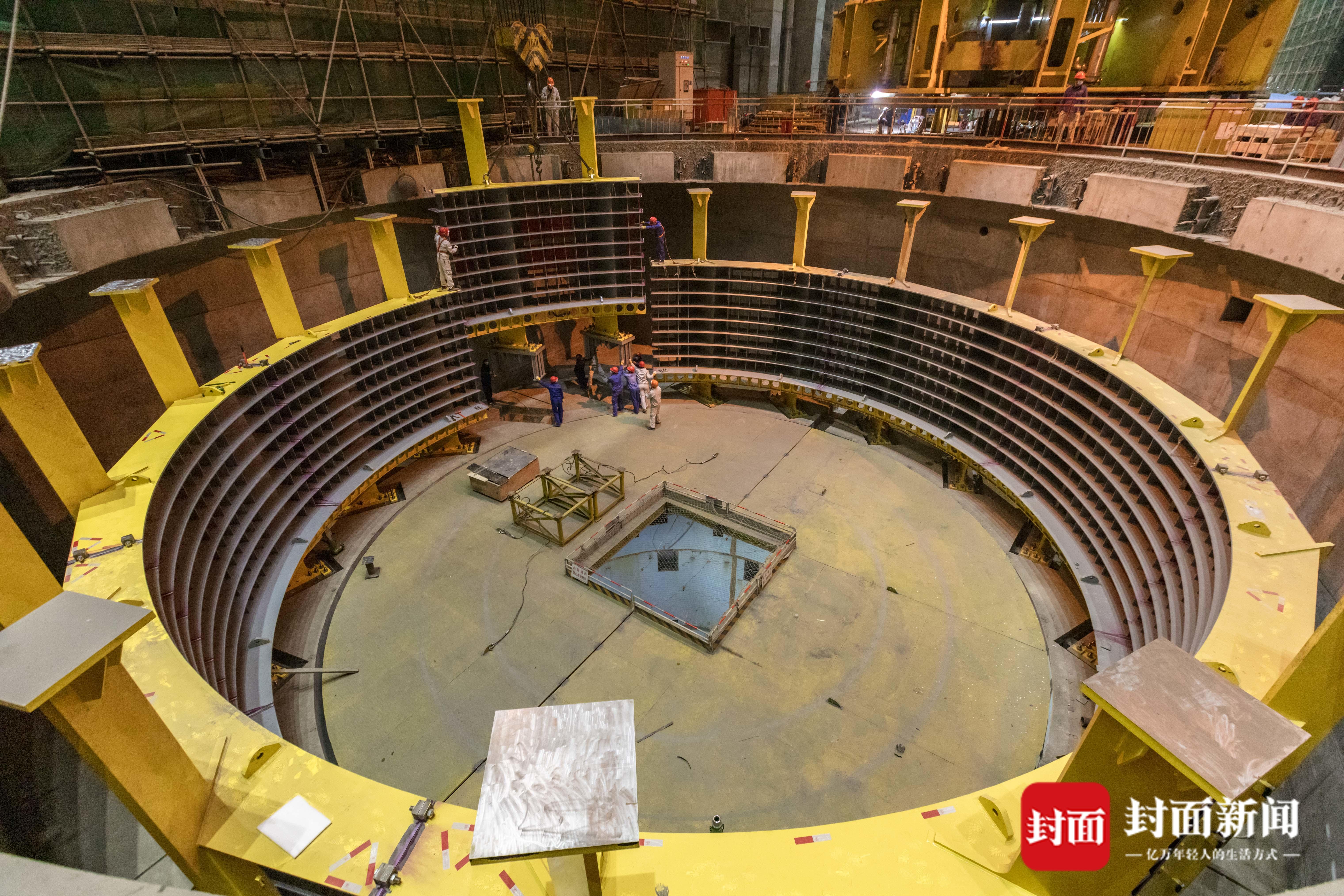 机组定子安装。 张勇 摄