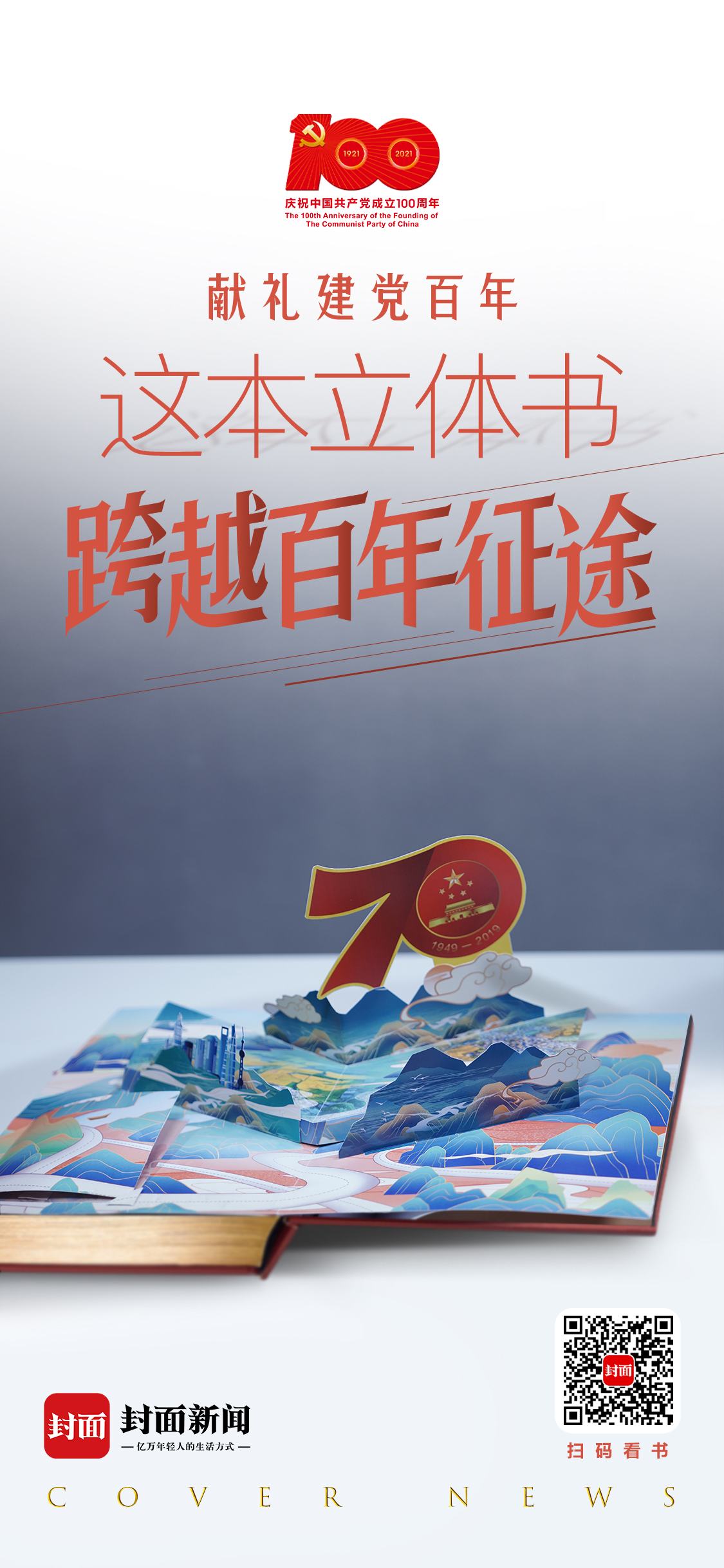 在中国共产党百年华诞来临之际,封面新闻历时三个月通过立体折纸书方式,刻画出百年来一幕幕难忘的历史时刻———《领航100年》,恰是风华正茂!