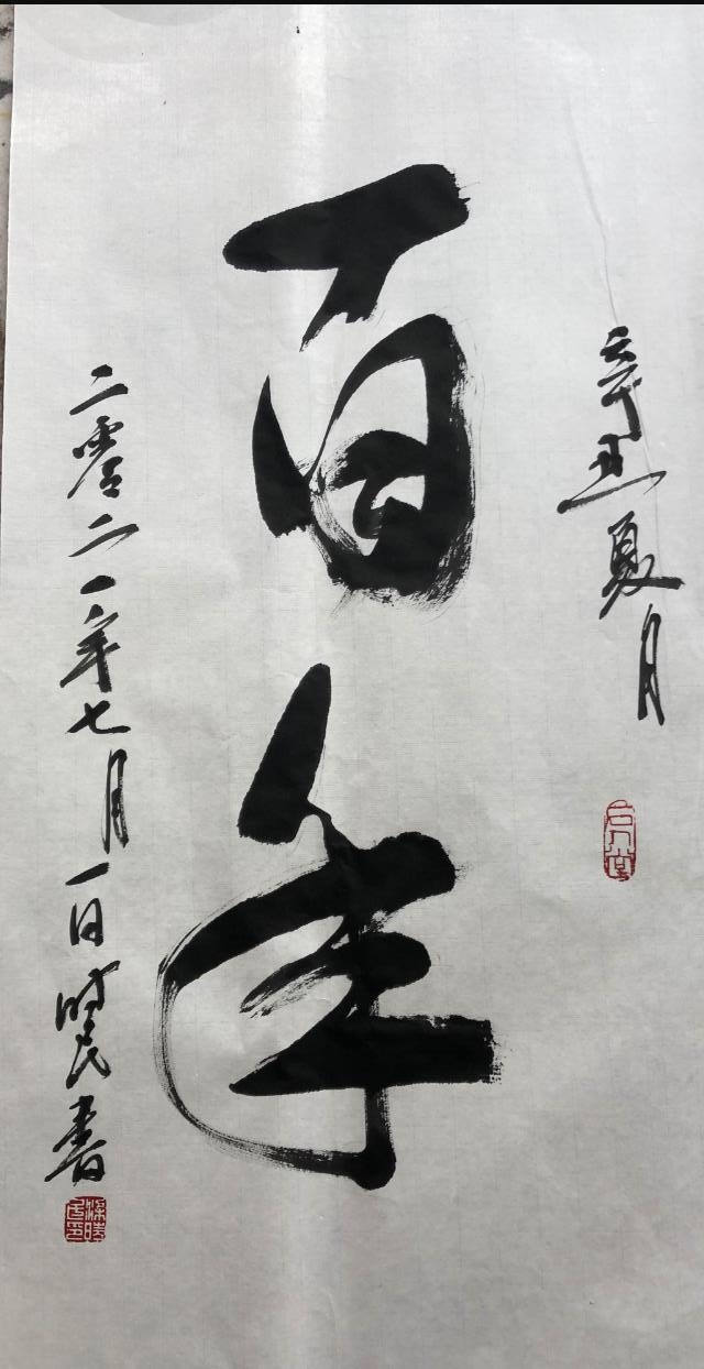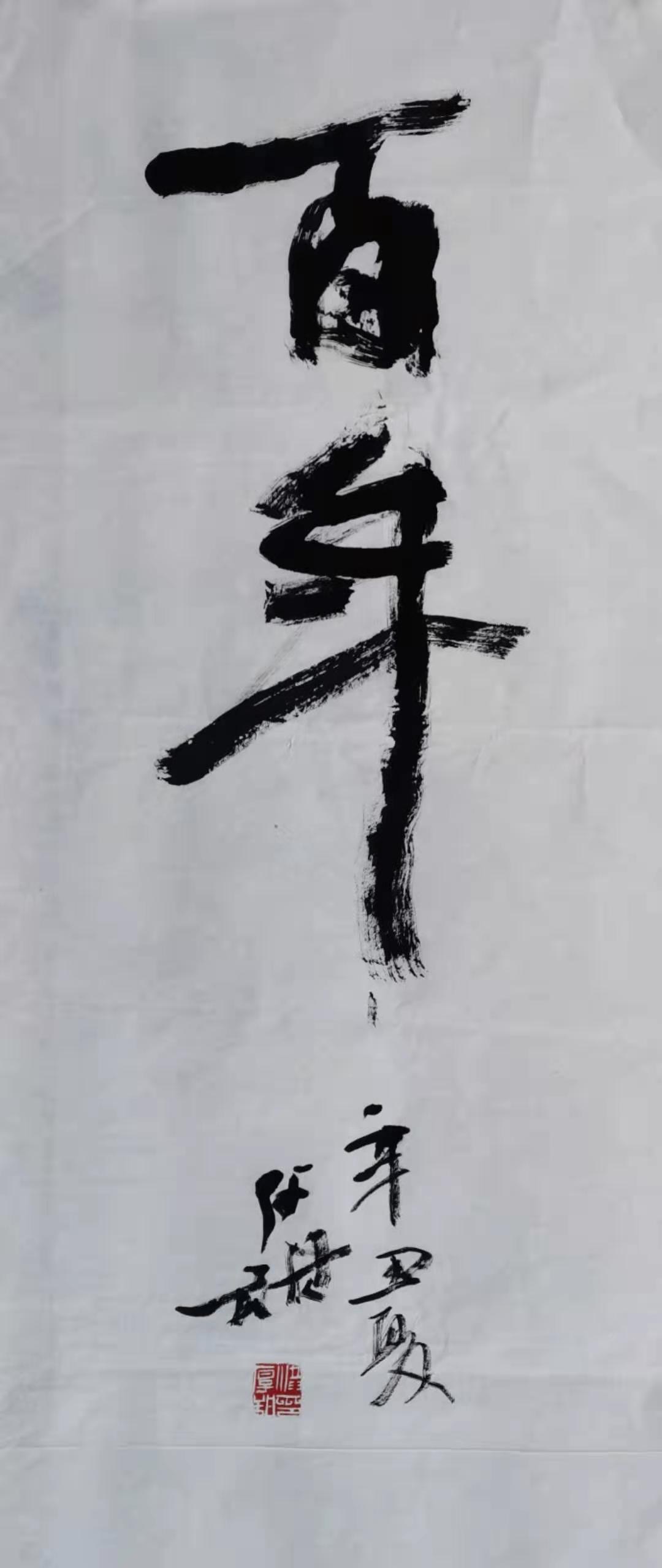 四川作家书画院首任院长杨宗鸿写了两个版本的“百年”,还书写对联直抒胸臆:“南湖一夜春风起,华夏百年伟业兴。”四川作家书画院常务副院长兼秘书长牛放郑重写下“百年”二字,他说:“书法是中华民族的文化艺术瑰宝,是文化自信心的重要元素。”